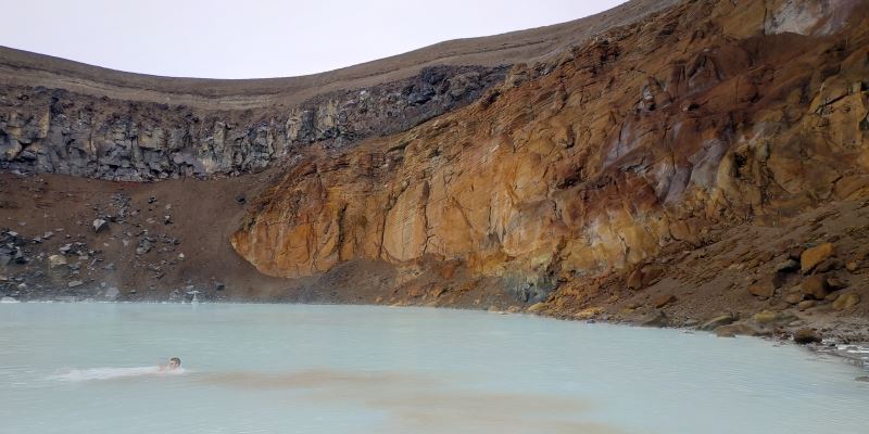 Le réveil se fait sous un temps nuageux, mais nous avions prévu d’aller au lac Viti pour profiter de ses eaux bleues et laiteuses.