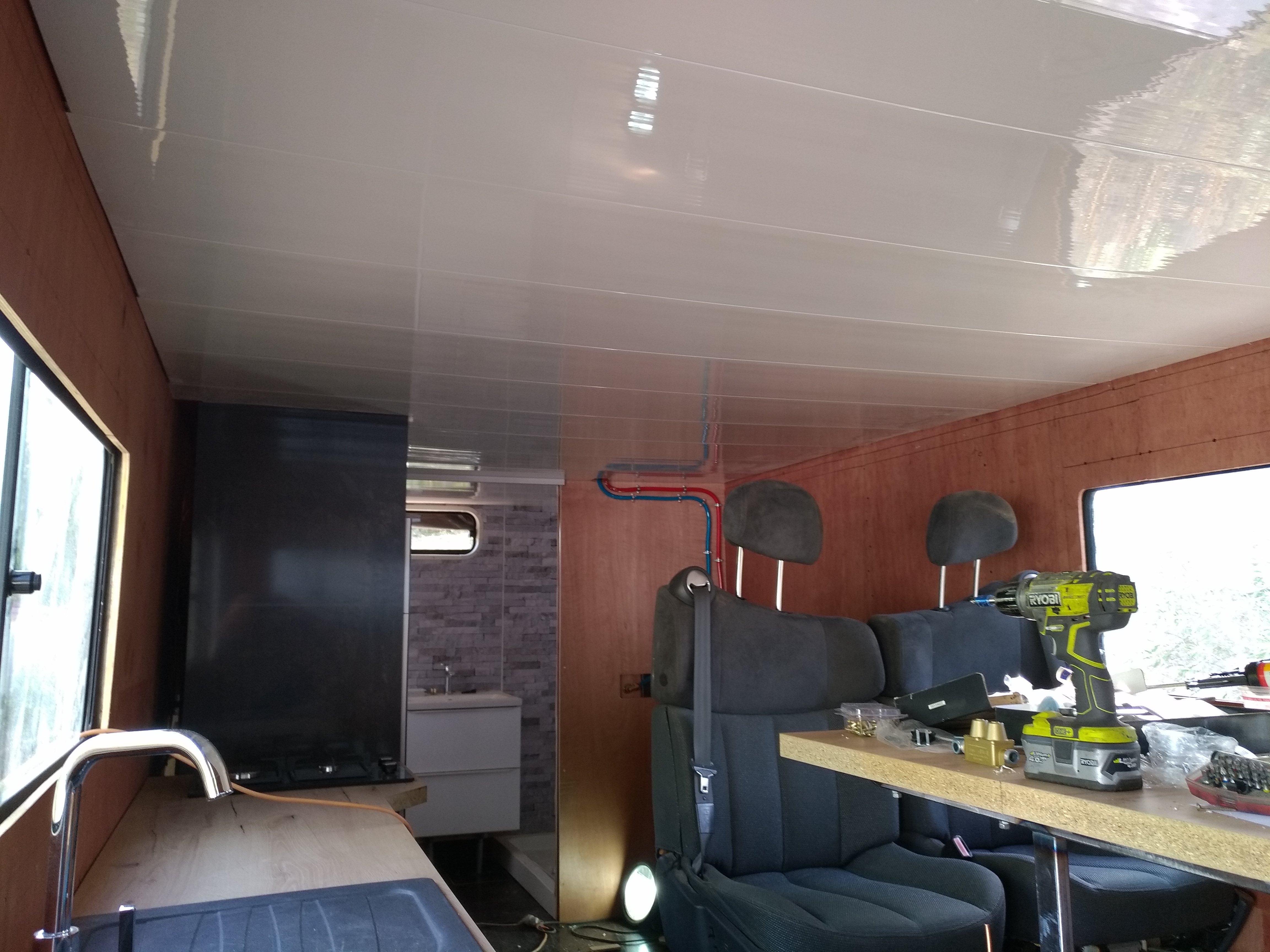 Pour m'excuser de mon inactivité sur le forum, je vais tacher de vous montrer ce que j'ai bricolé depuis tout ce temps. On en était resté au moment où on s'apprêtait à présenter le camion à la DREAL avec notre aménagement succinct mais eligible... Une fois la carte grise reçue avec la mention VASP caravane ( que nous avons copieusement fêtée), on a pu commencer sérieusement les travaux.