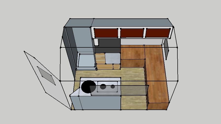 j'ai réalisé un plan 3D sur sketchup avec les côtes approximatives ( de mémoire) mais pas trop loin de la vérité quand même.