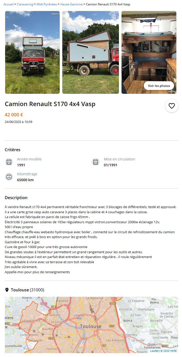 Vu sur LBC : Camion Renault S170 4x4 Vasp