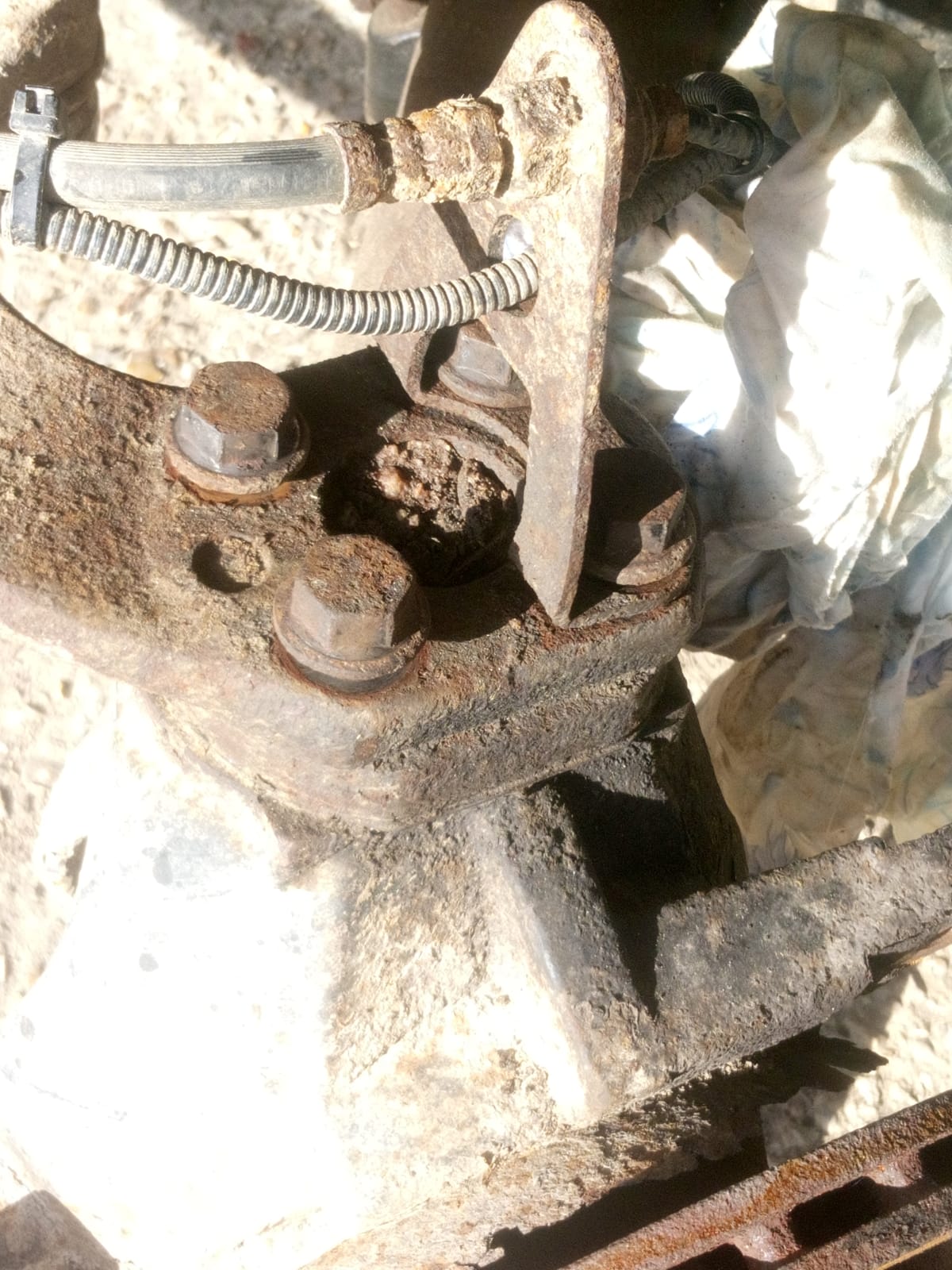 Merci à la clef à chocs Dewalt sans fil, qui grâce a ses 1500 newtons en desserrage , a permis de démonter des vis, disons presque soudées au pont..