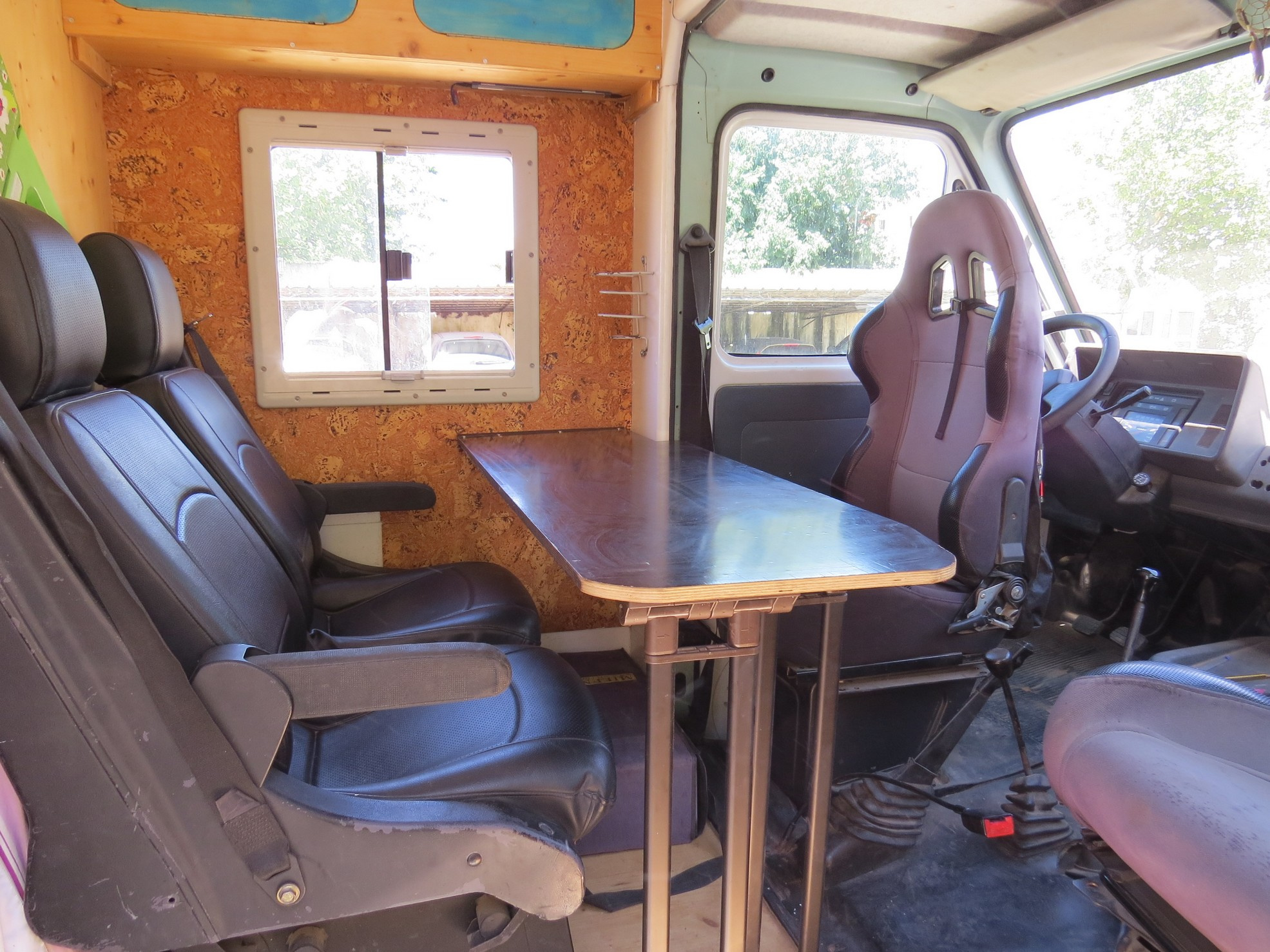 coin repas au niveau du poste de conduite avec table et siège pivotant