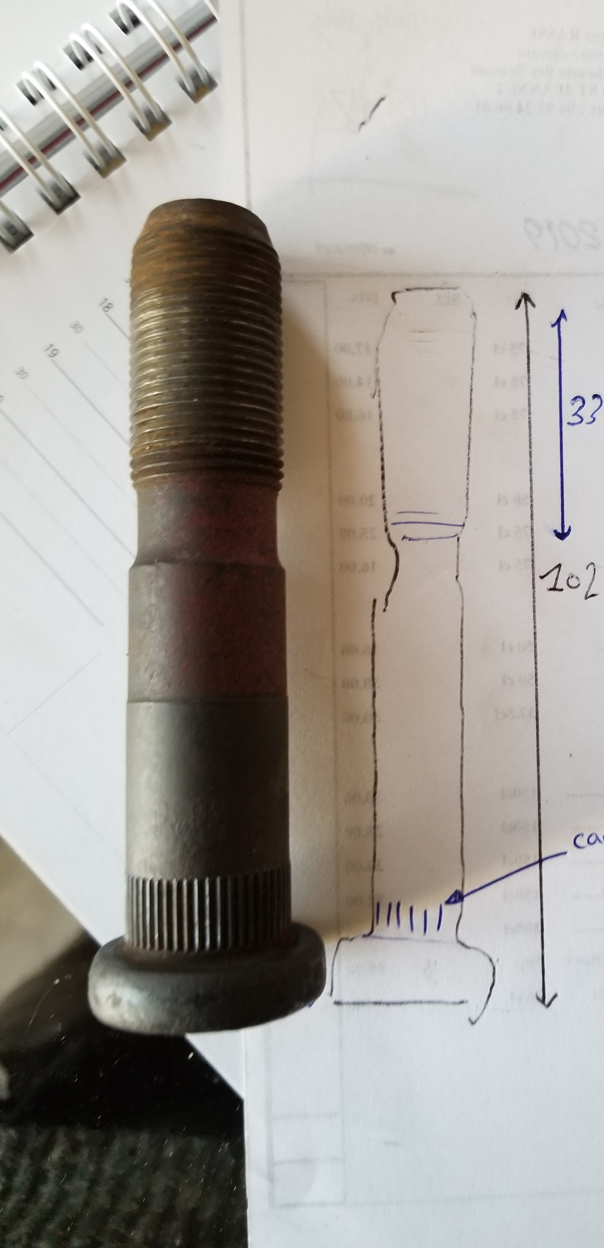 J'ai aussi du mal a trouver la bonne référence des goujons et des écrous, je trouve M22 x 1,5 pour le filetage et l'écrou qui correspond est seulement en 27mm sur internet alors que ceux que j'ai actuellement sont en 30mm.