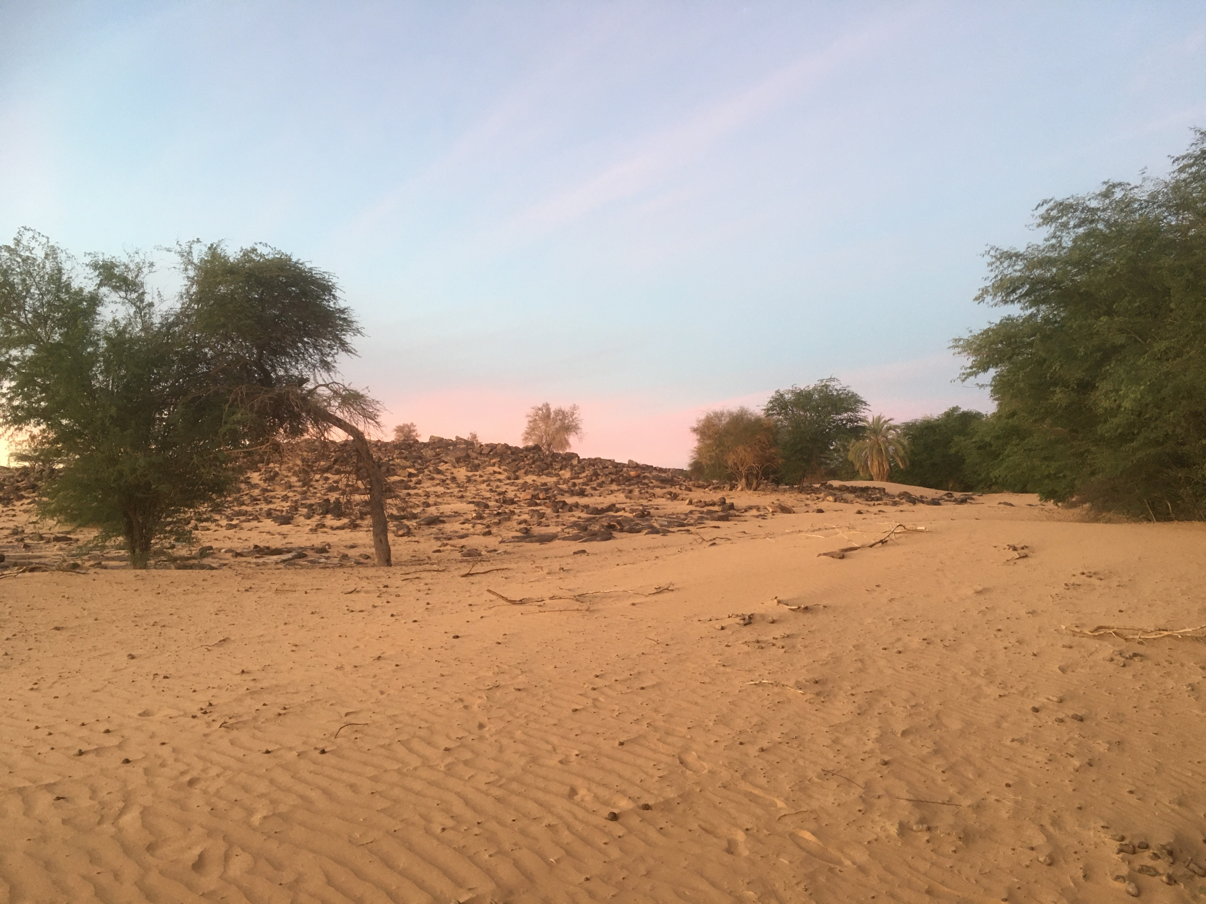 Le bivouac du soir fut encore l’occasion de manger frais et sain : un couscous de légumes et du pain cuit ds le sable avec les braises du feu de camp. Ici il n’y a pas grand chose : 6 humains, 4 dromadaires, des acacias, des cailloux et du sable, un ciel constellé d’étoiles. Pourtant on ne manque de rien. Le regretté Coluche aurait dit « pas un troquet, pas un babyfoot, pas une Mobylette, ...la zone ».