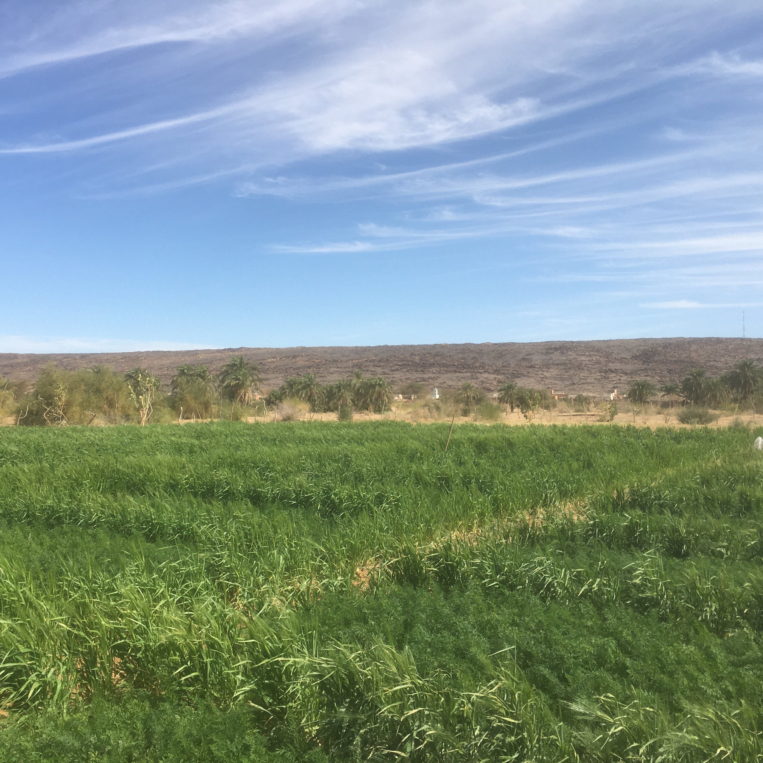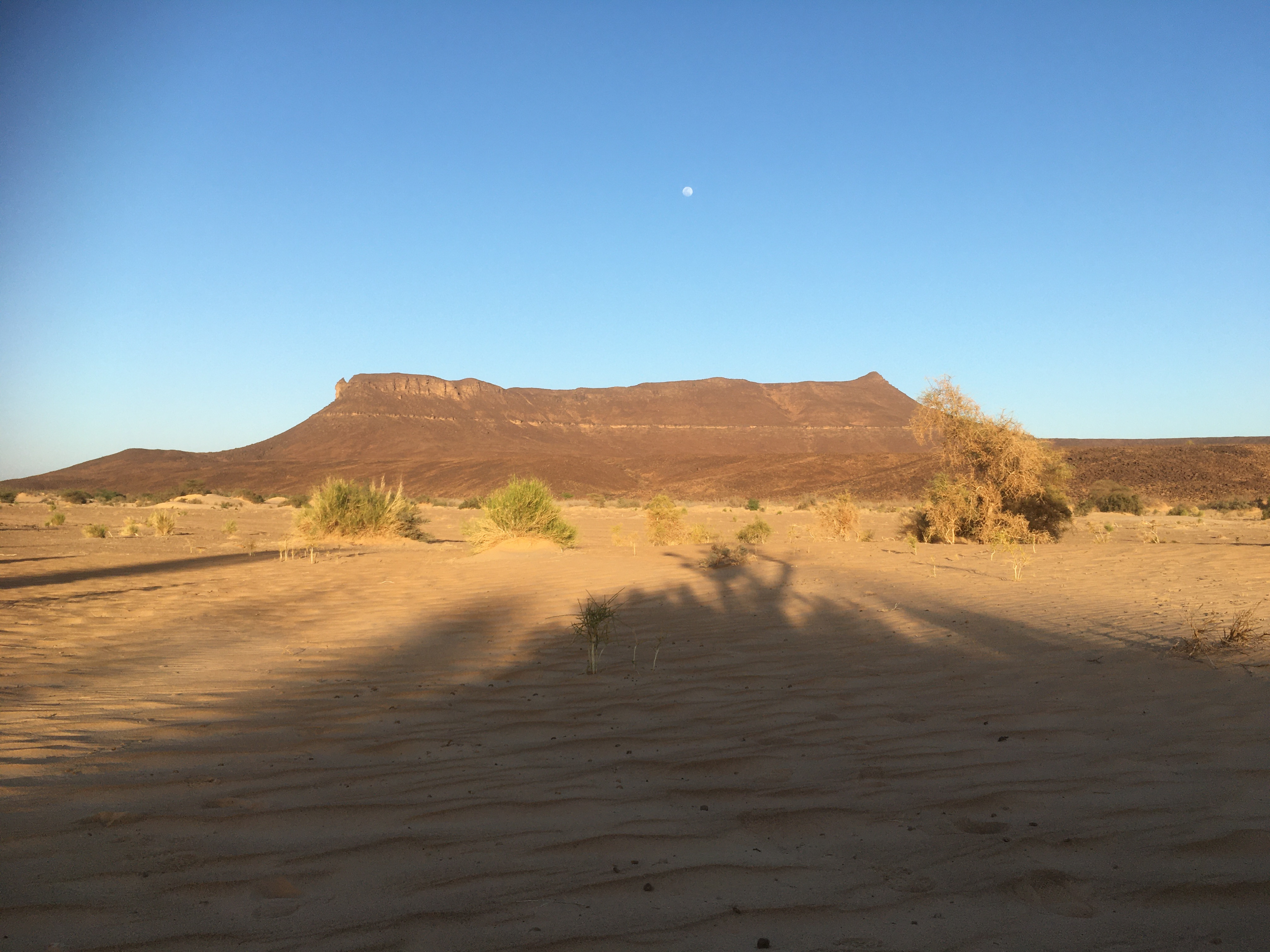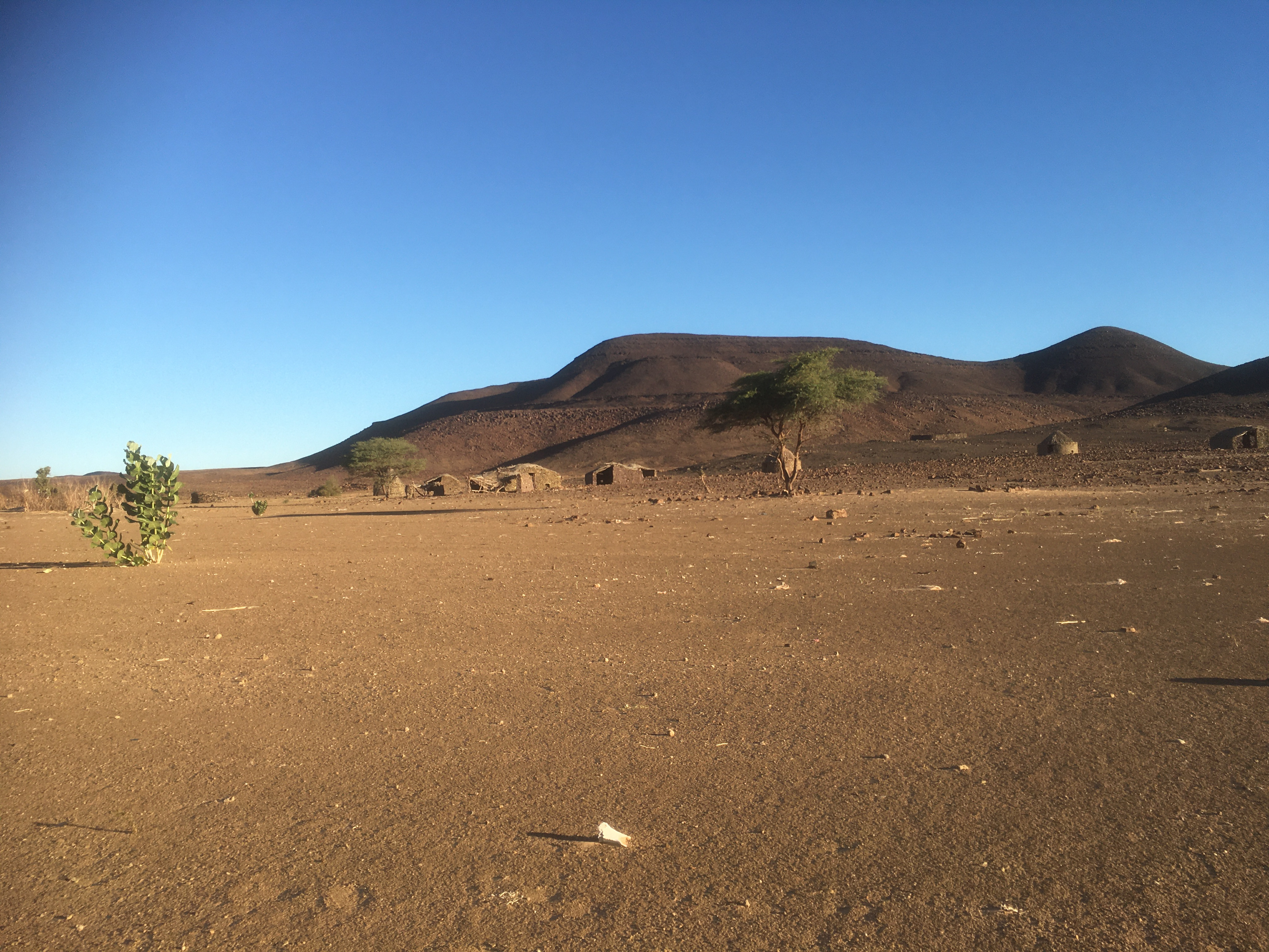 Je n’aurais jamais imaginé que un jour, on me donnerait deux carottes fraîchement cueillies en guise de cadeau de bienvenue. C’est ainsi que nous répartîmes de la palmeraie de Maaden où l’on cultive ce légume en plein désert. Puis direction ouest vers les belles mais peu franchissables dunes de cette partie du Sahara mauritanien. Non sans un signe amical des enfants du village où ici les tongs servent à baliser les buts, car on joue au foot pieds nus.
