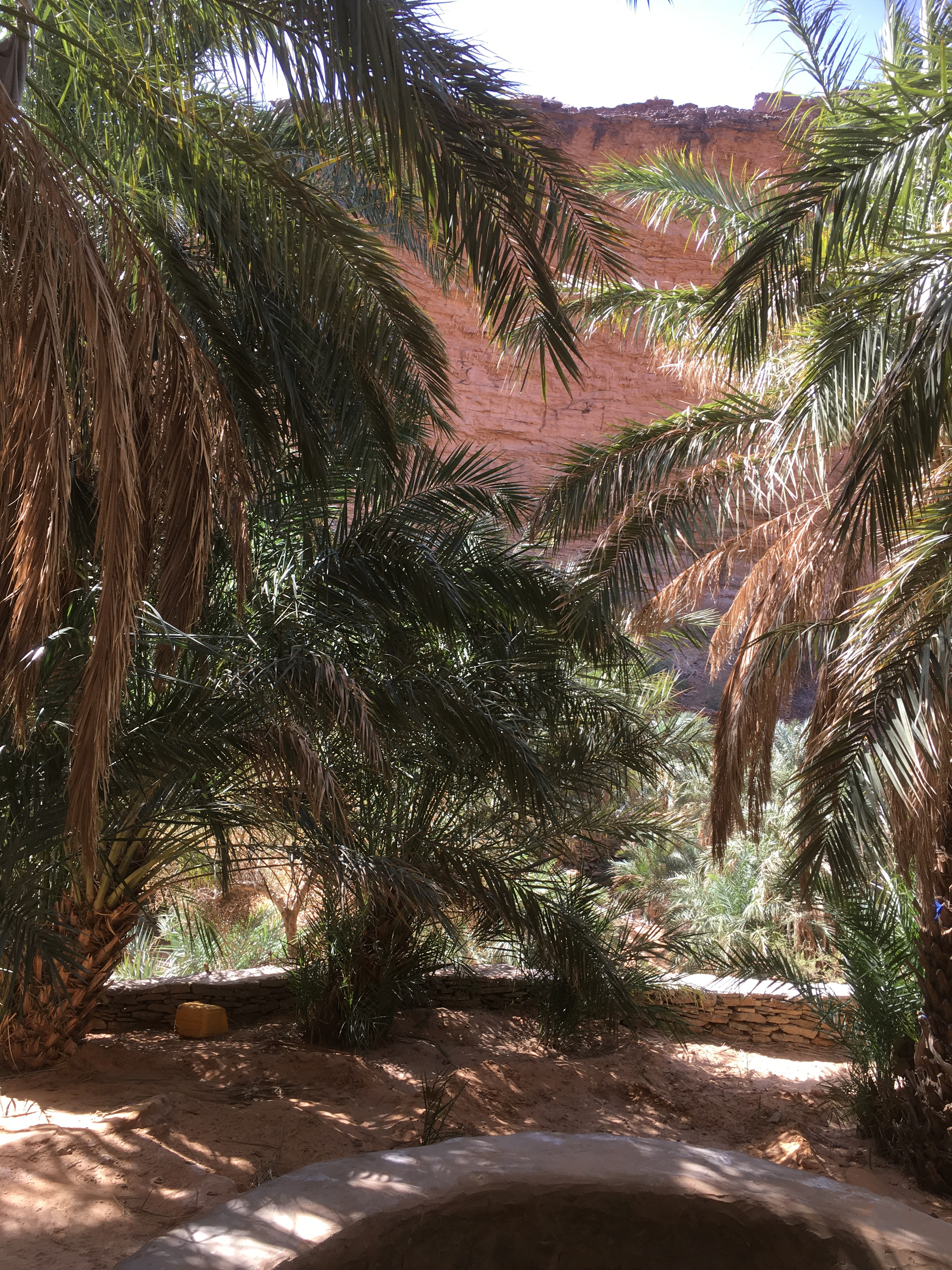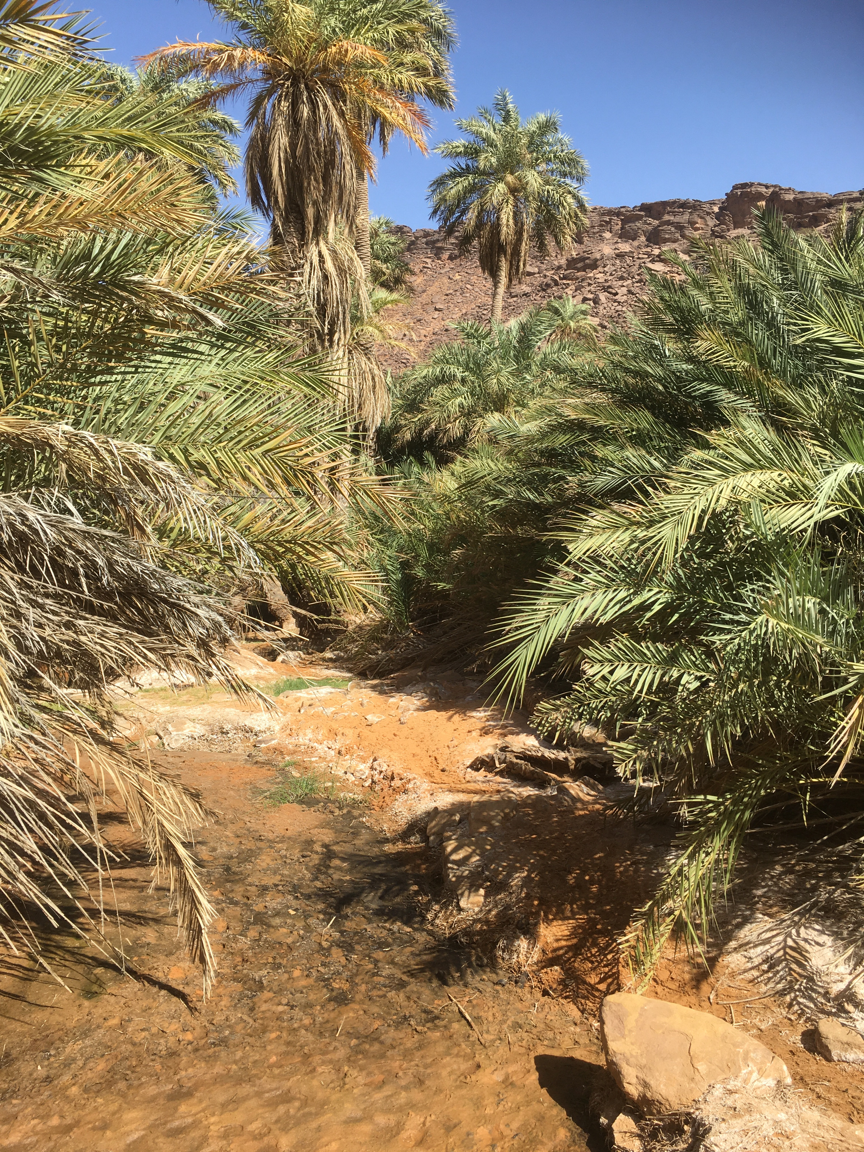 Ce matin très peu de marche du fait du retour vers la côte atlantique, mais deux perles extraordinaires : l’oasis perdue au fond d’un canyon non loin de notre campement, puis avec le Toy, 1h de piste bien rocailleuse puis goudron vers un canyon digne du Colorado, voilà l’oasis de Terjit, plus grande avec sa palmeraie. Juste deux havres de paradis dans des paysages déjà fantastiques. Quand est ce qu’on y retourne ?
