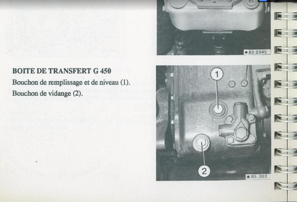 Je voudrais vidanger la boîte de transfer mais je n'arrive pas à trouver le bouchon du niveau. Quelqu'un pourrait me dire ?