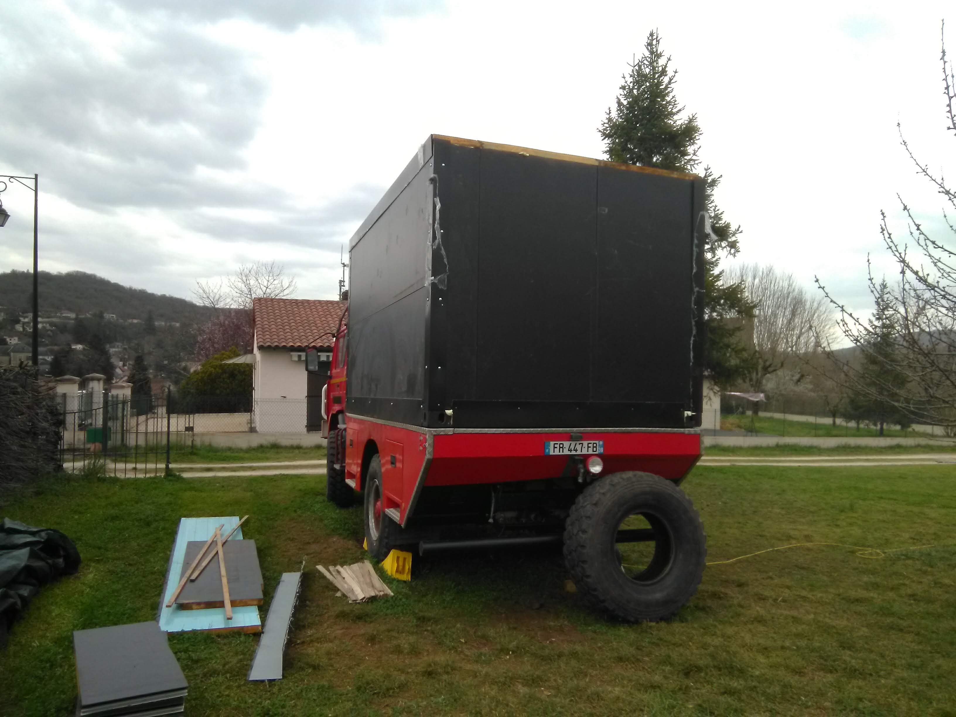 D'abord je fait le rallongement du camion et la préparation du plateau pour la cellule, que je vais fabriquer en panneaux sandwich lisse de 40 mm.