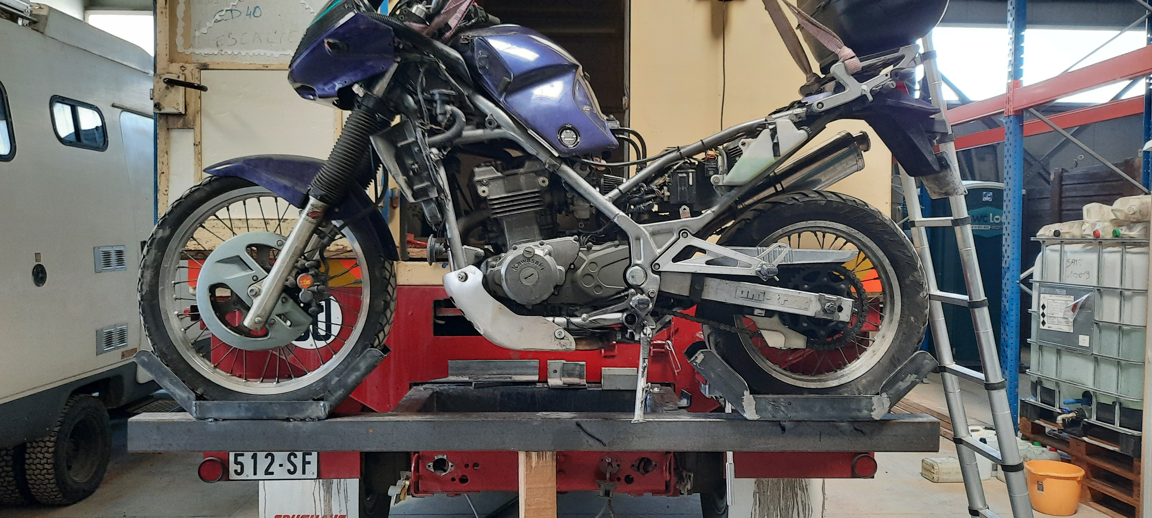 merci oui ca ne devrais pas bouger surtout que je n ai pas fini et pour la fixation de la moto que pense mettre des anneaux et sanglé.