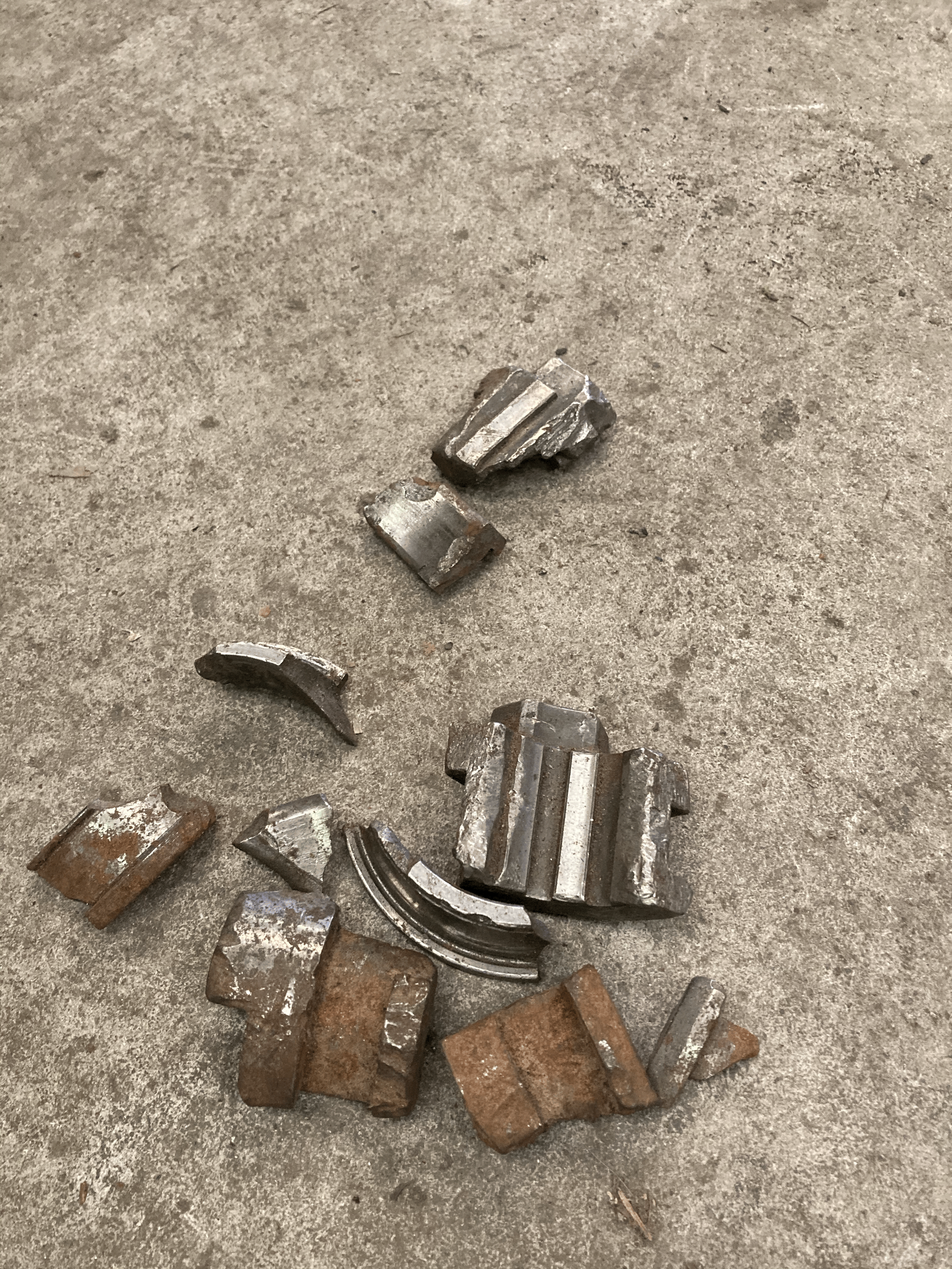 Plus les morceaux du crabot et l'axe de commande qui est tout explosé sur le tien.