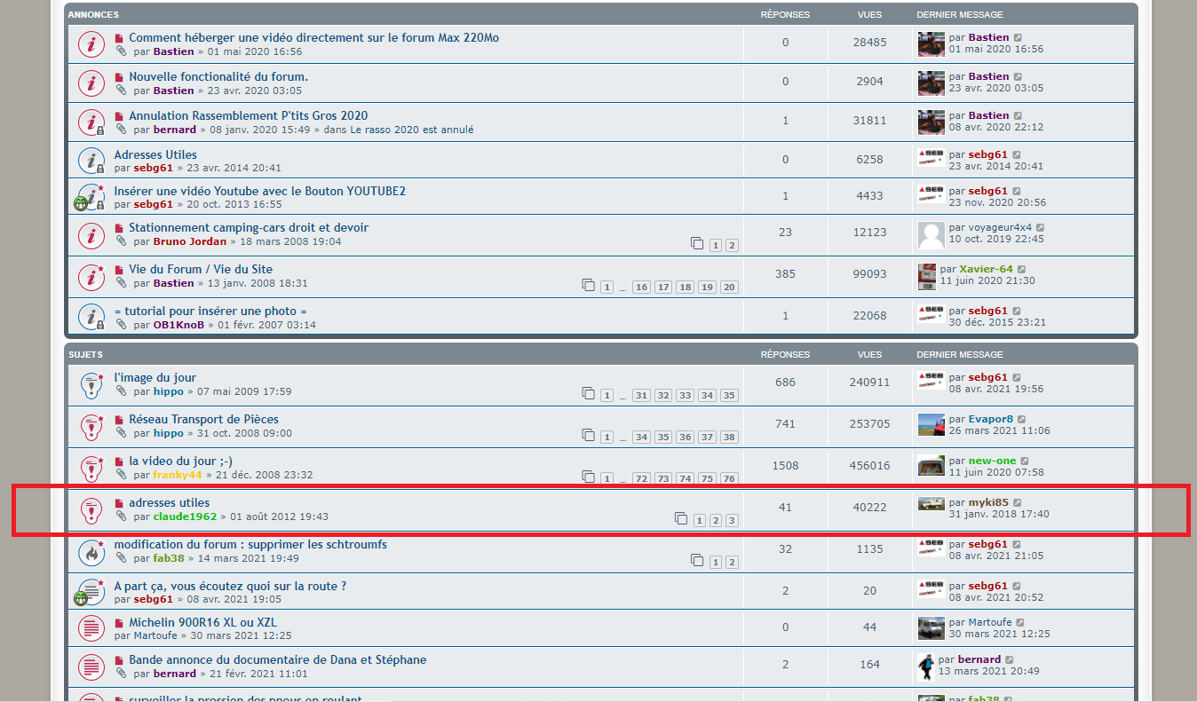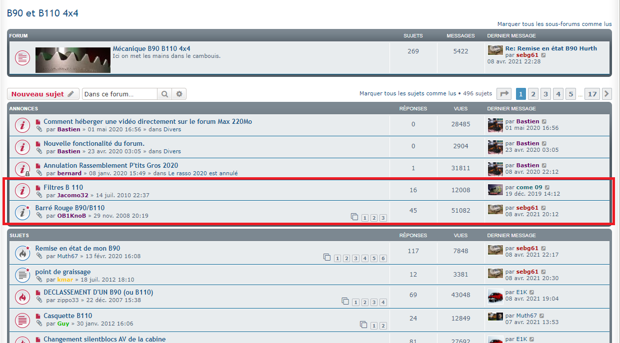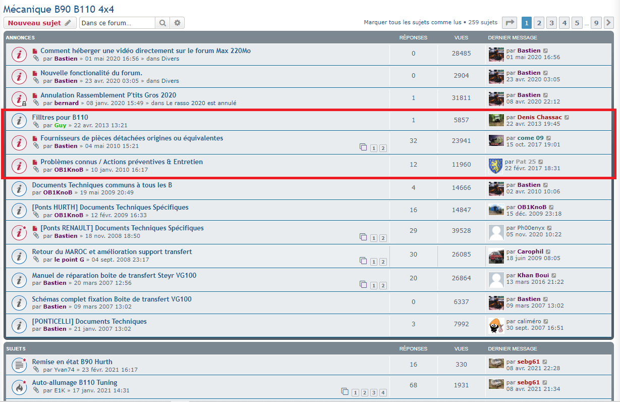 Sinon, chaque modérateur de sa rubrique peut ajouter des sujet qui sont mis en avant, exemple pour la rubrique des B:
