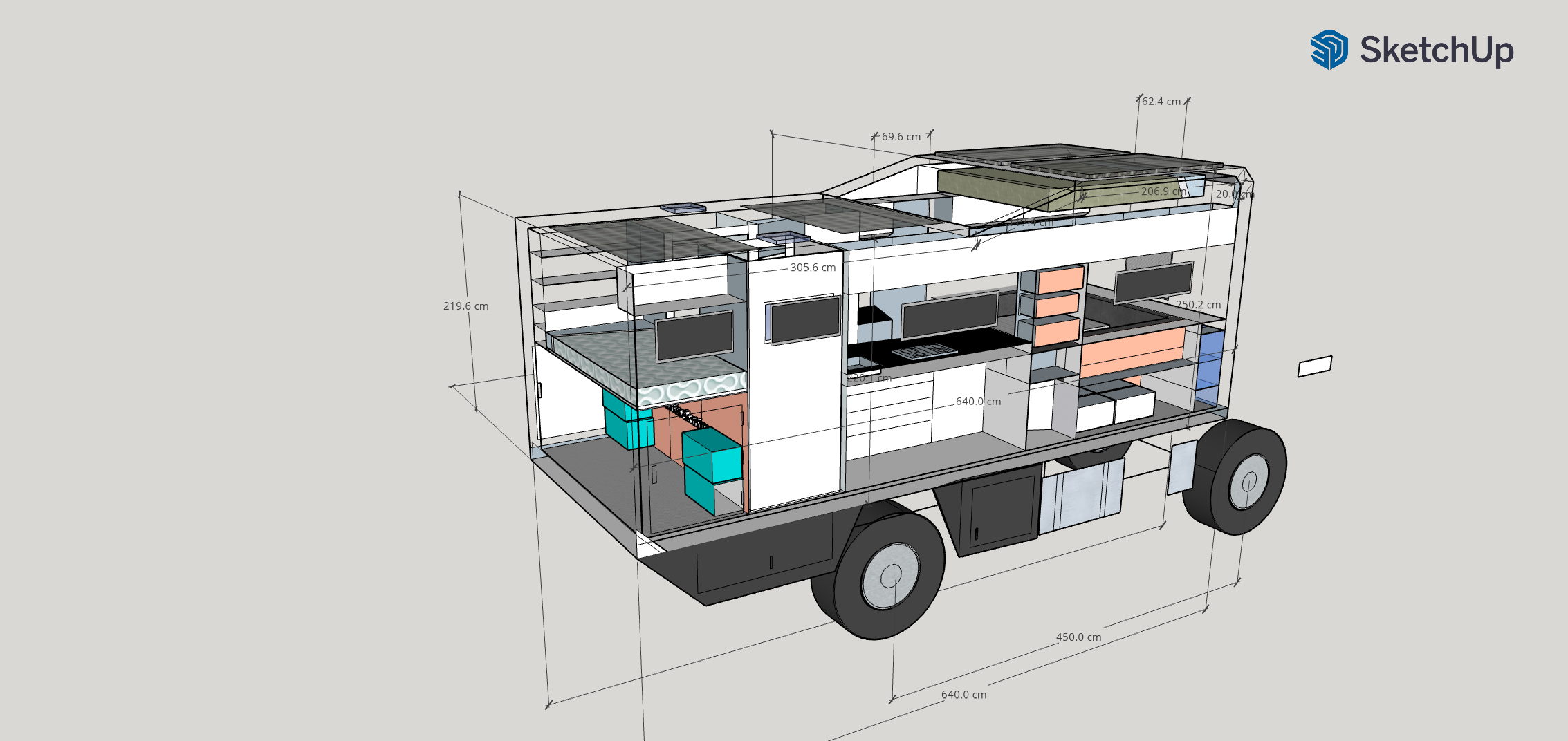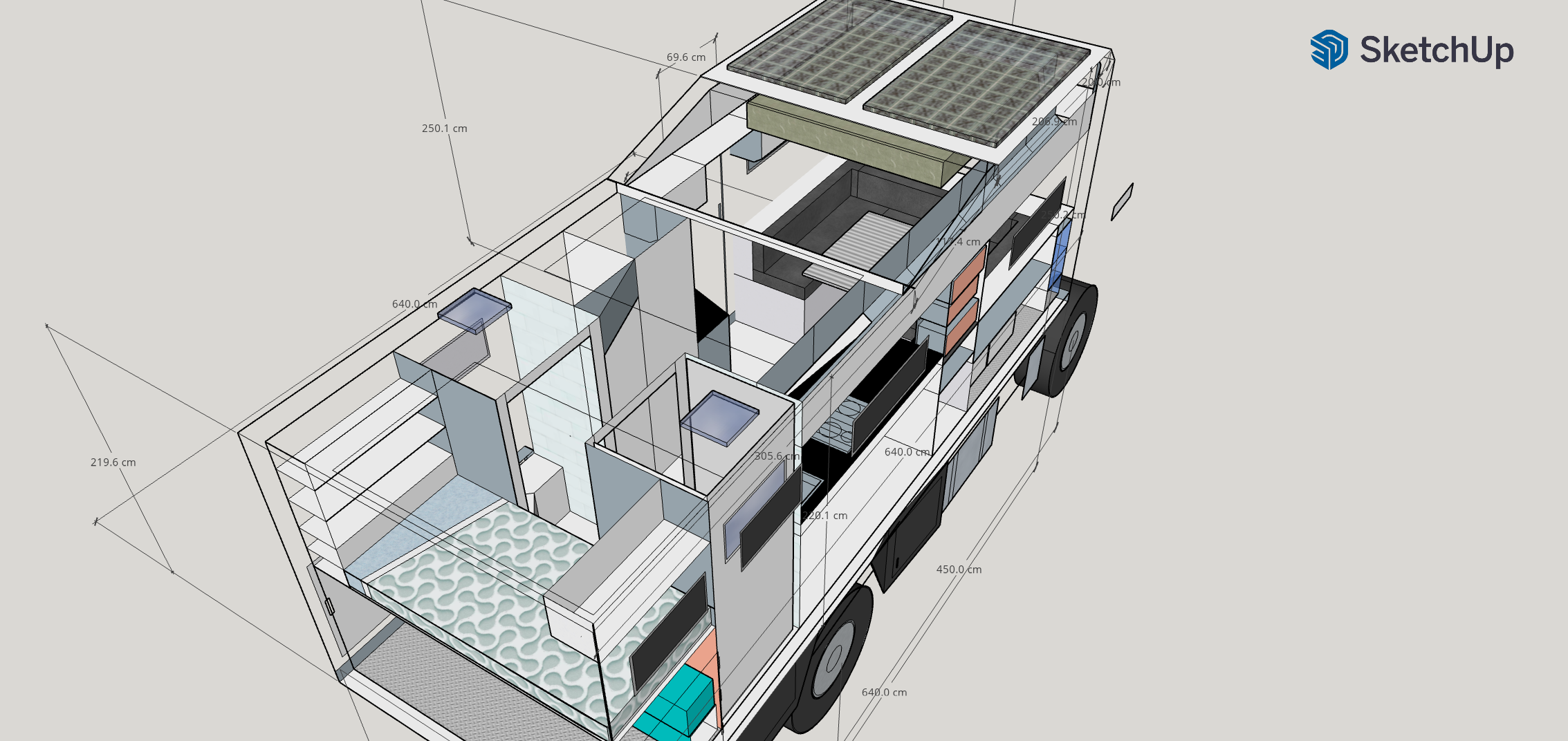 je vous partage ici le manted du futur camion ainsi que le plan de la cellule que je peaufine sur skechup