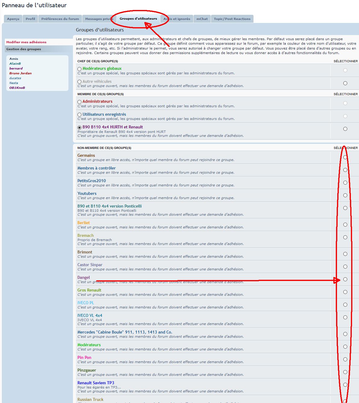 Voici la procédure pour vous inscrire dans le groupe qui correspond a votre véhicule.