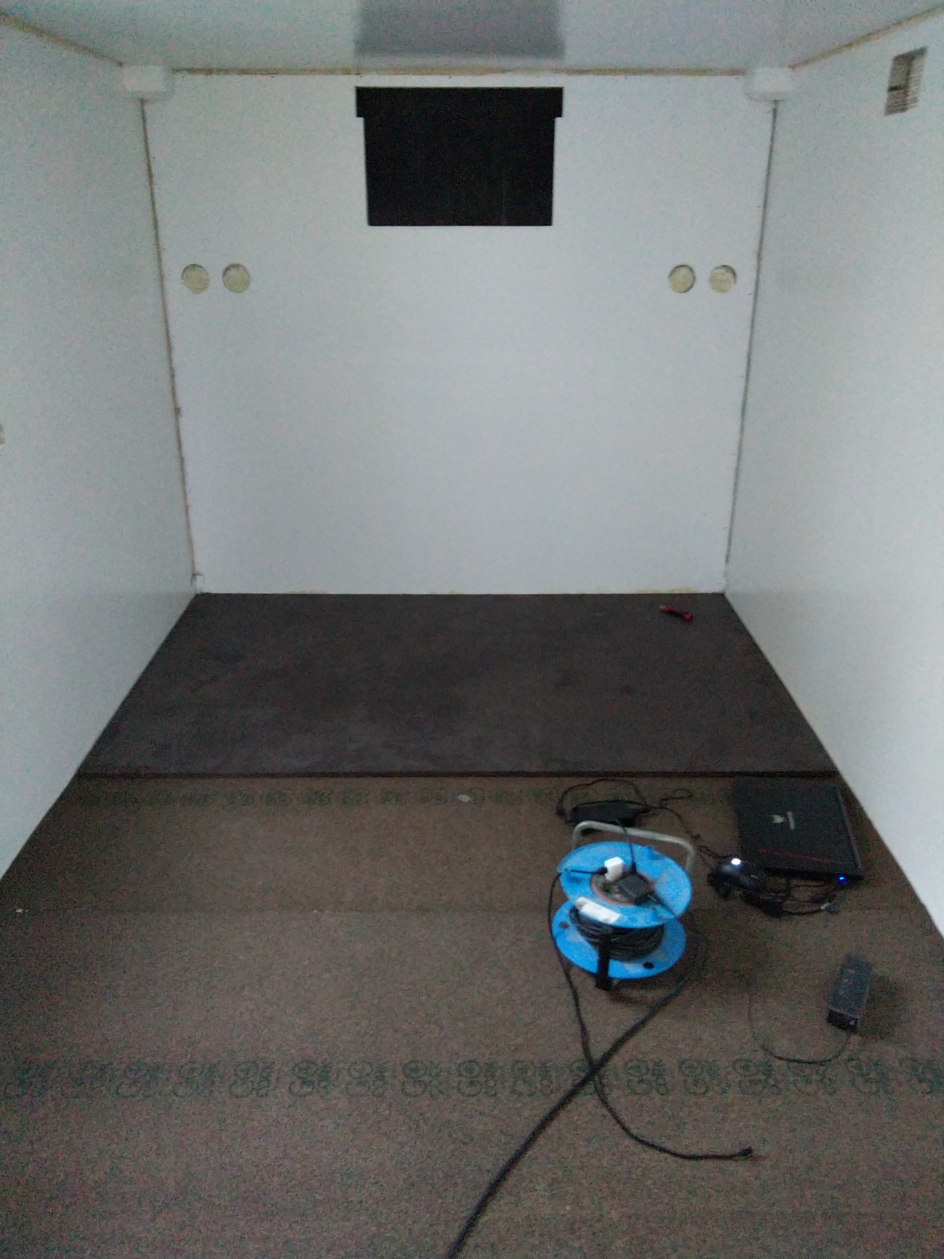 Après avoir arraché toutes les structures internes gênantes, j'ai posé un revêtement liège/caoutchouc recyclé très efficace.
