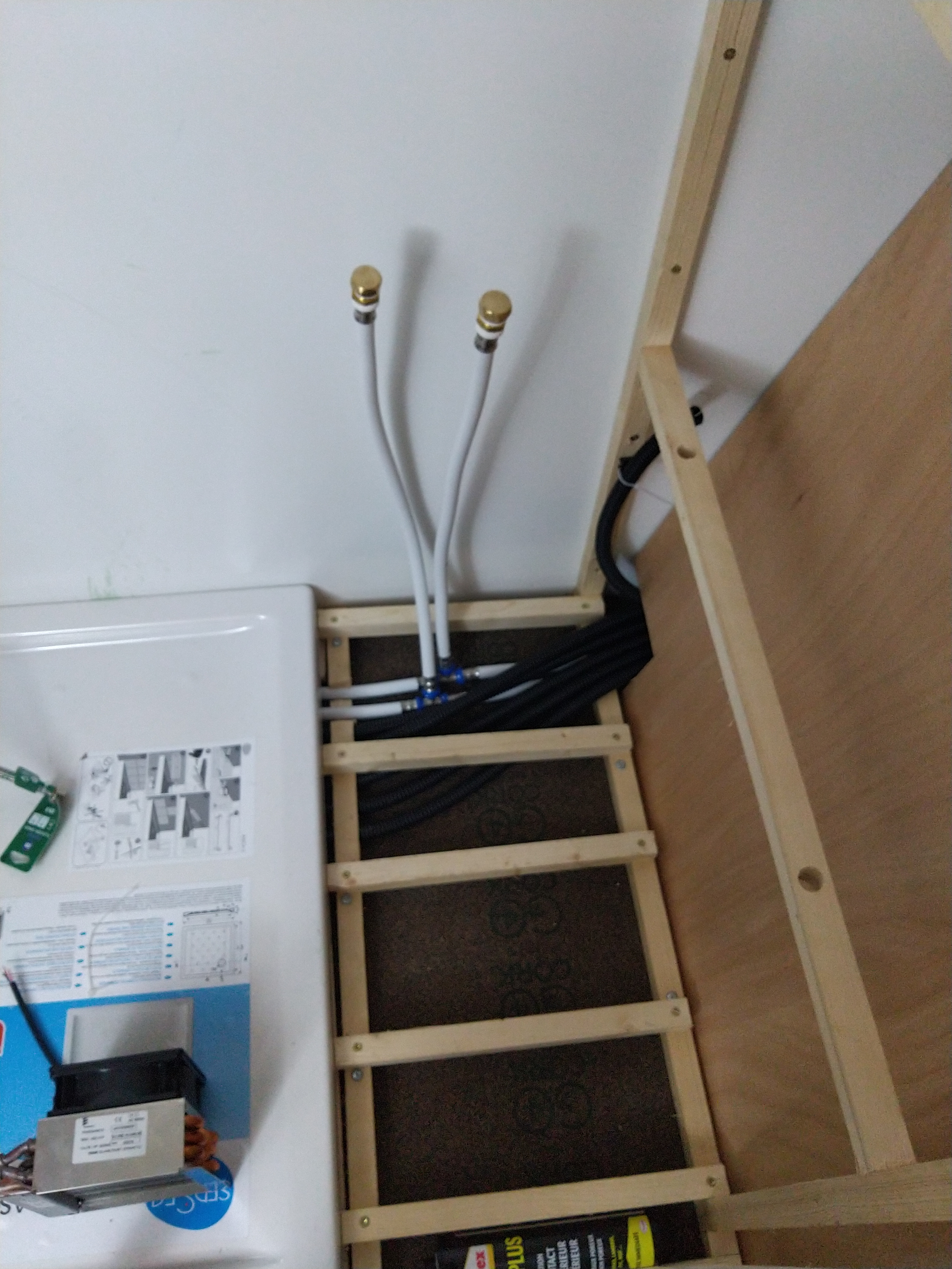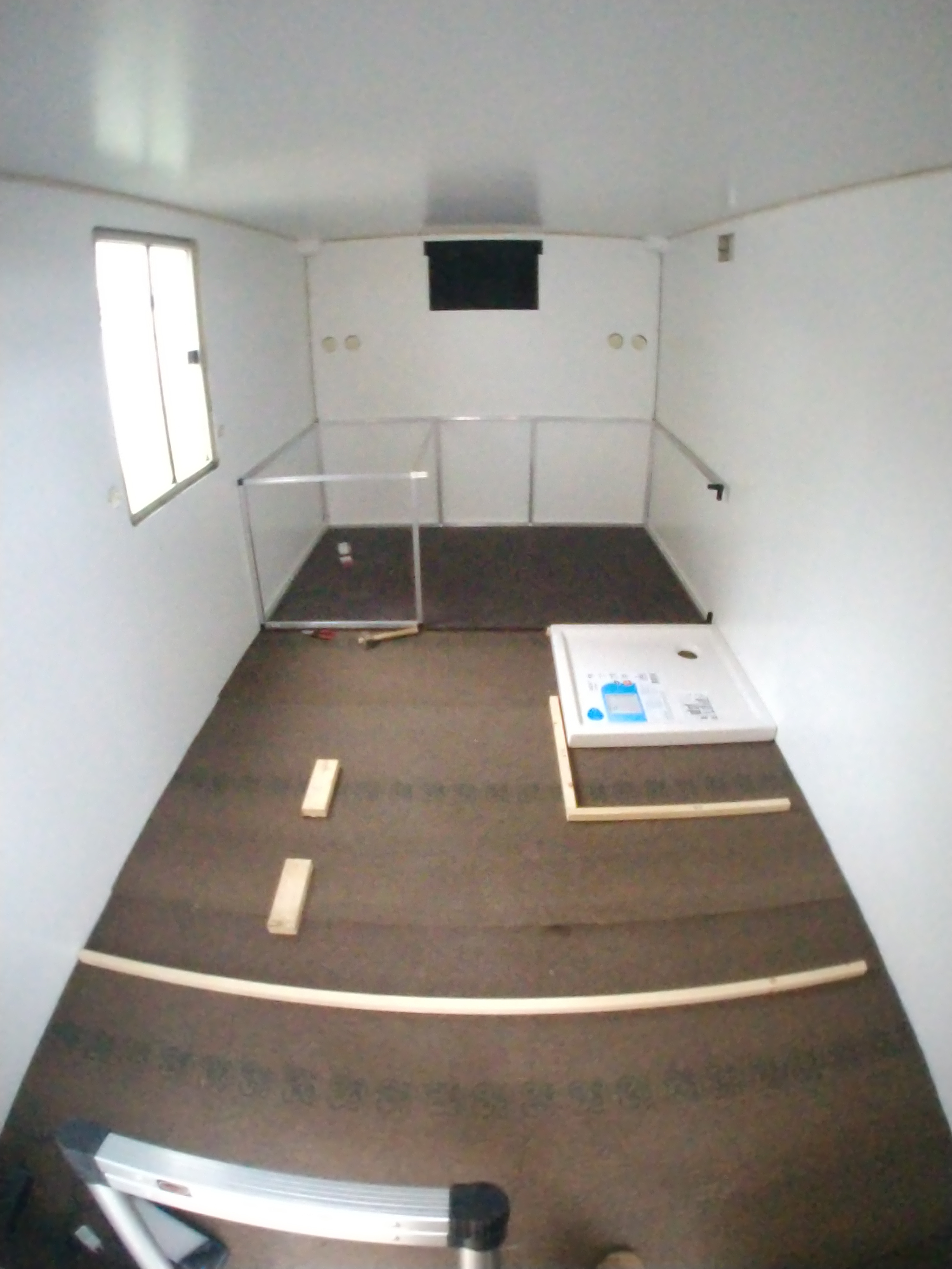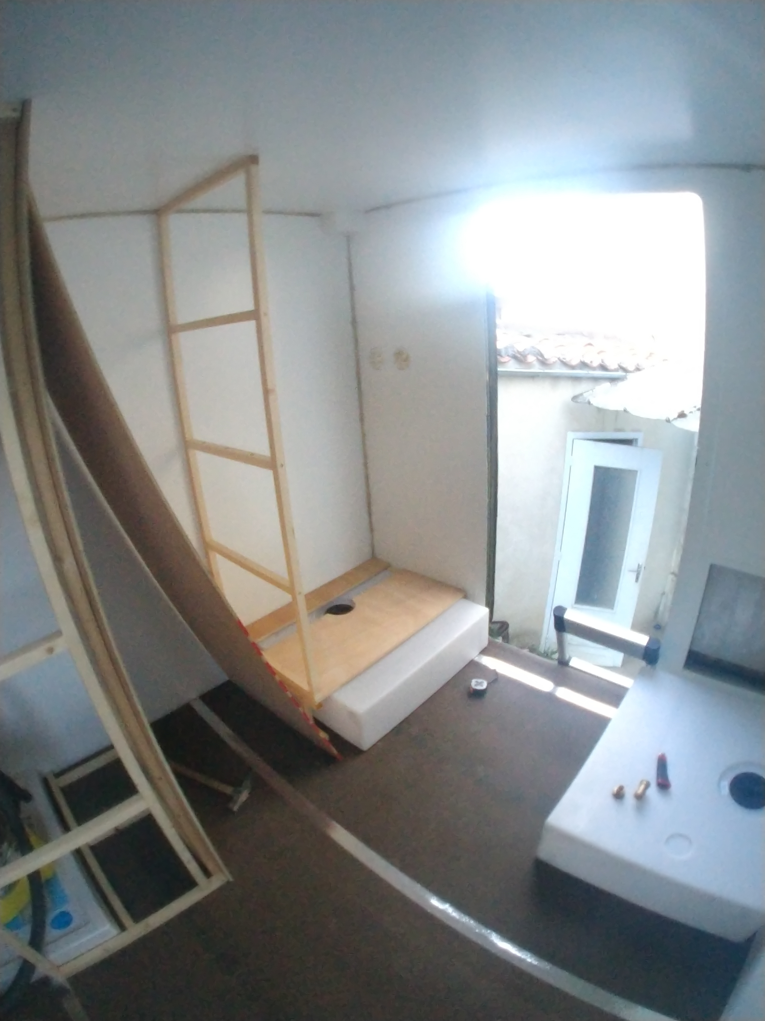 Bilan des courses, la salle d'eau est presque étanchéifiée, manque le montage des meubles dans la chambre avec quelques coups de peinture à droite et à gauche. L'eau est tirée mais pas l'élec.