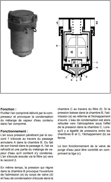 Simple en fait: le ressort 5 décolle la valve 3 du fond de cuve 1 quand il n'y a pas de pression et laisse l'eau des condensats s'échapper.