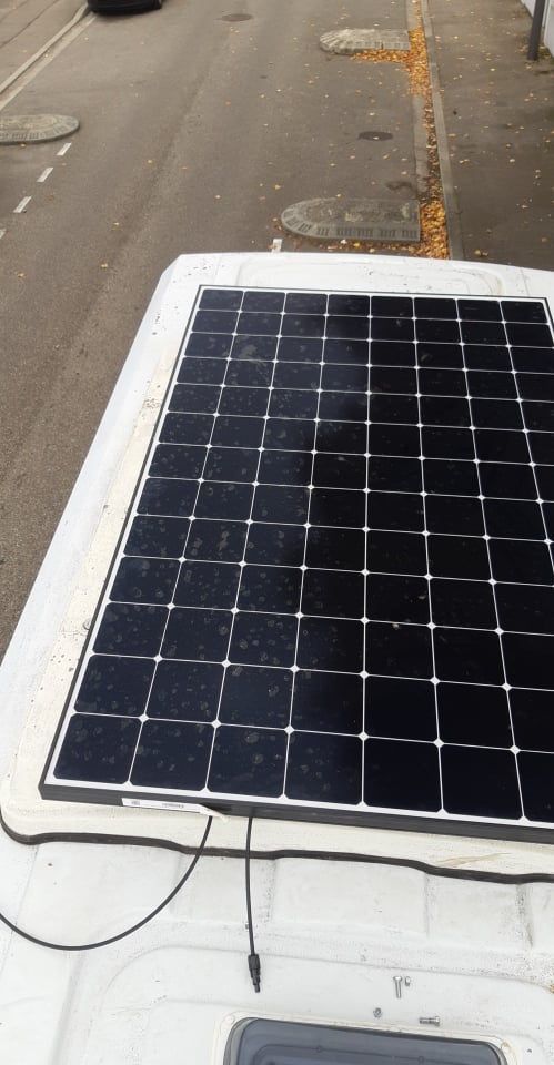 J'ai aussi installer mon panneau solaire (Maxeon 3 de chez sunpower en 400W), sur mon toit relevable ! J'ai fabriqué un support avec des cornière en aluminium, de sorte à ce que je puisse incliner le panneau si besoin en hiver. JE vous avoue que je suis un peu frileux sur la solidité de mon installation. J'aurai du prendre des profils plus gros / plus epais, à voir dans le temps.