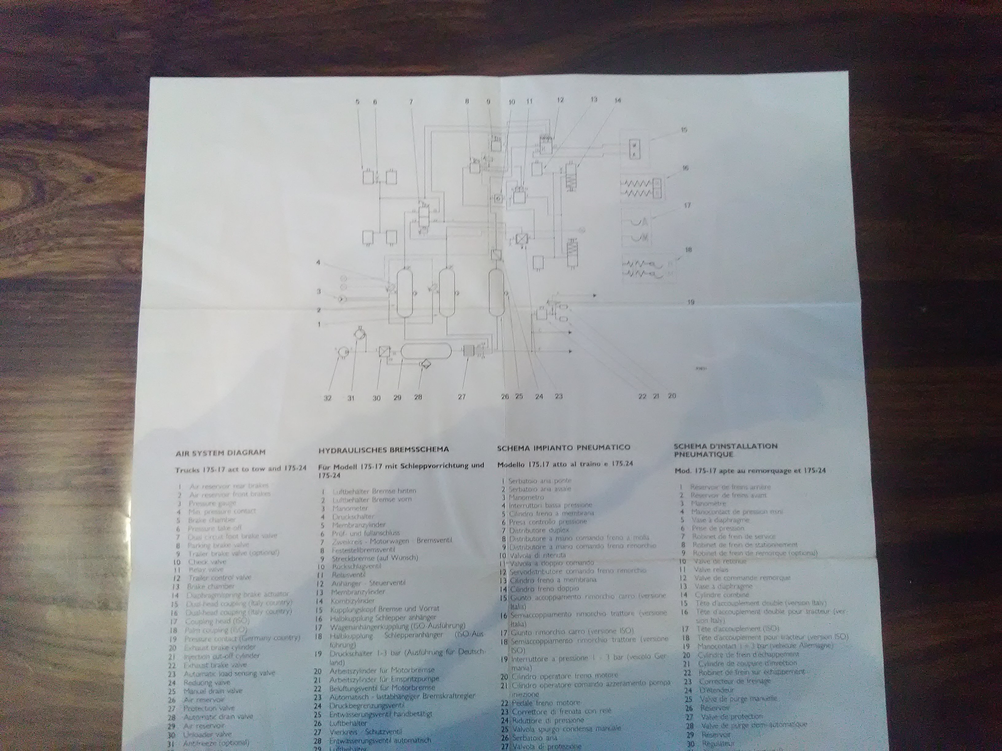 Le voyant ne s'éteint pas mais tu à quelle pression dans les bouteilles? Si je ne me trompe pas il faut que la pression soit atteinte dans les deux bouteilles de 25l (frein de service) pour que le voyant s'éteigne.