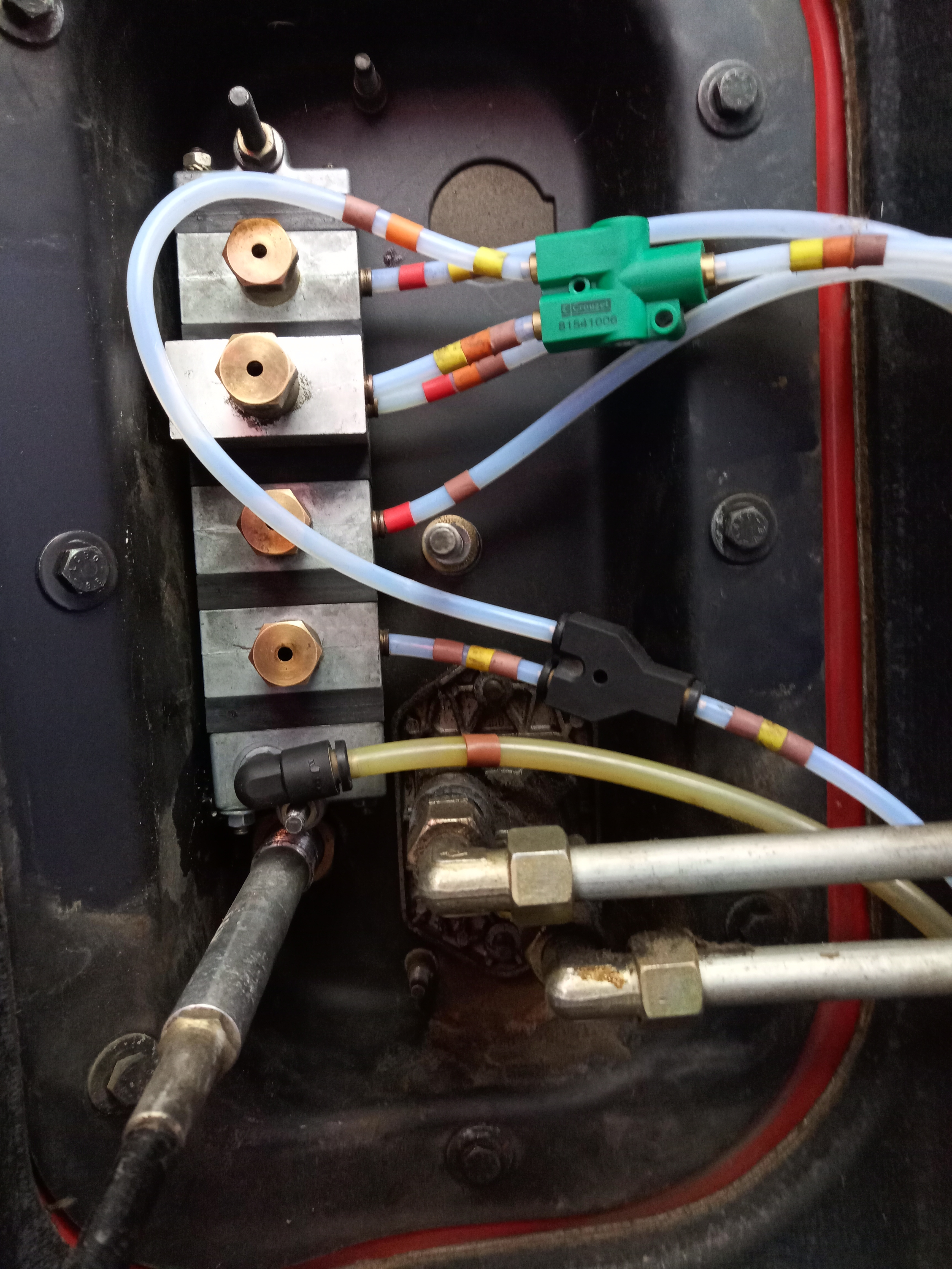 Bonjour à tous ,J'ai reçu la carte grise vasp caravane il y a 15 jrs :D . Voila j'améliore quelques détails sur le camion, camera de recul et de hauteur gabarit , attaches plaques d'envoles etc ... Quand j'ai fait régler les freins j'avais demandé de regarder les blocages je soupçonnais une défaillance sur le pont avant et bien maintenant j'ai les PV qui ne se mettent en marche que si j'enclanche le pont avant ??? Ils m'ont changé un diffuseur de pression et remis en place des raccordements ???. Donc il faut que je regarde ça de près hors de question de rouler comme ça . Je pars encore dans un truc que je ne connais pas et je n'ai pas envie de faire de conneries .D'après la comparaison du post à Loïck sur la photo j'ai le raccord Y et Cellule ET logique inversés ,Incidences possibles ou pas ?