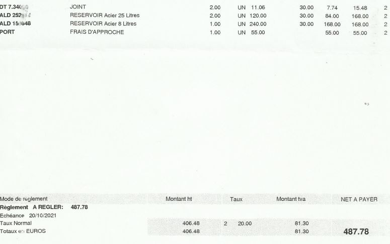 et de mémoire le lot de 3 bouteilles faisait moins de 400€ et le filtre dessiccateur environ 40€ (on dirait un gros filtre à huile)