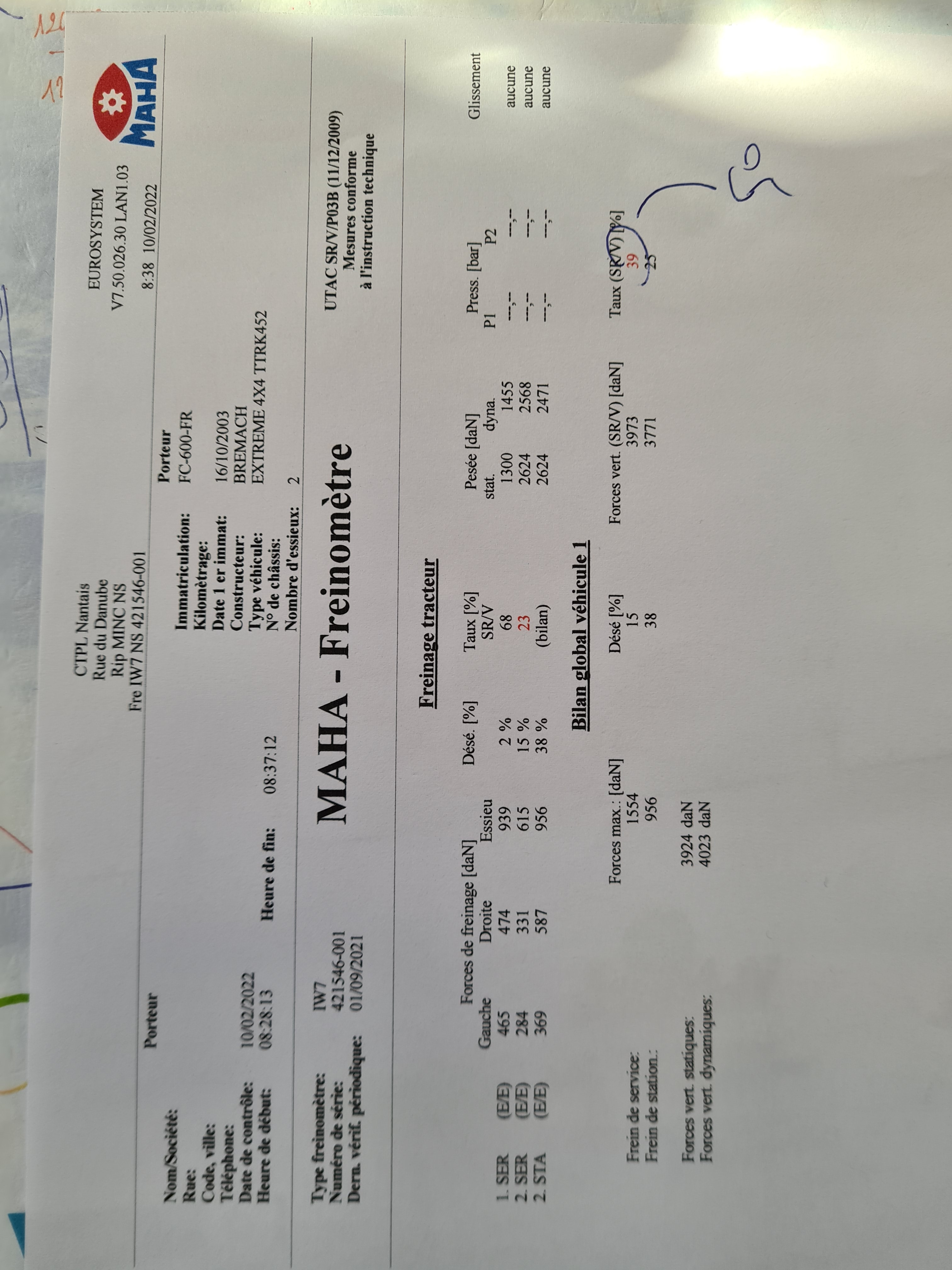 BREMACH - EFFICACITE FREIN AR INSUFFISANTE
