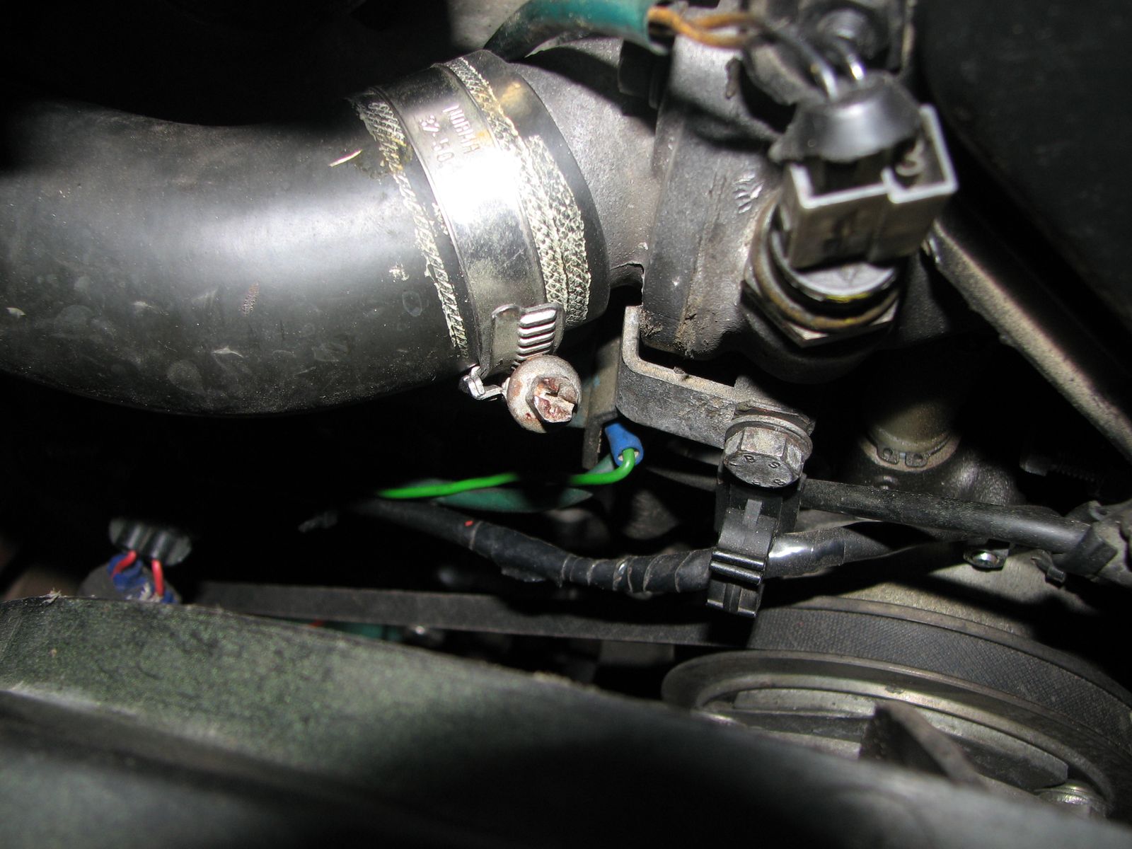 Elle se cache sous la grosse durite d'entrée d'eau au radiateur, côté culasse.