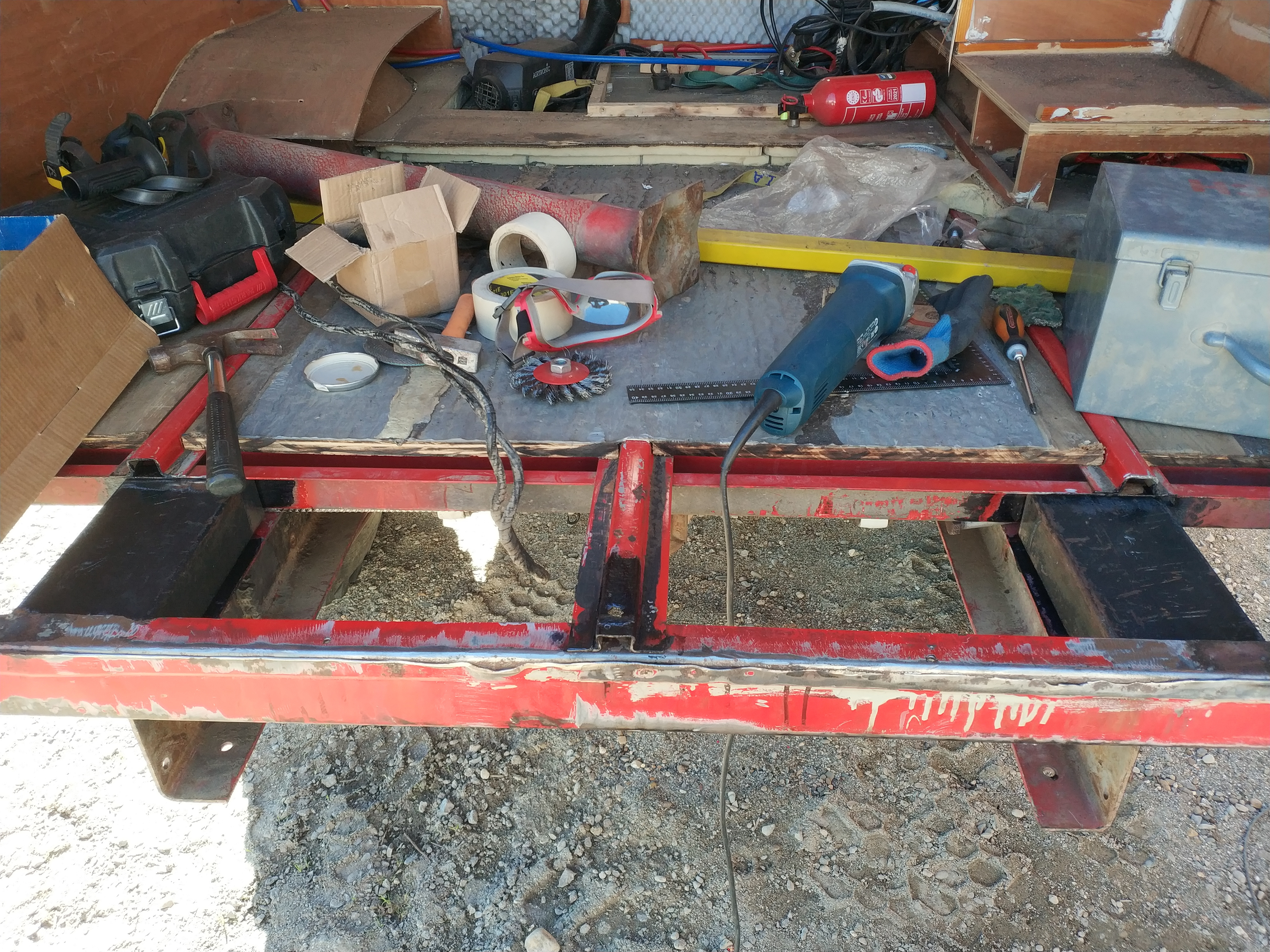 Ce weekend j'avais un peut la flemme. Je n'ai soudé que les 2 traverses qui maintiennent la cellule au châssis.