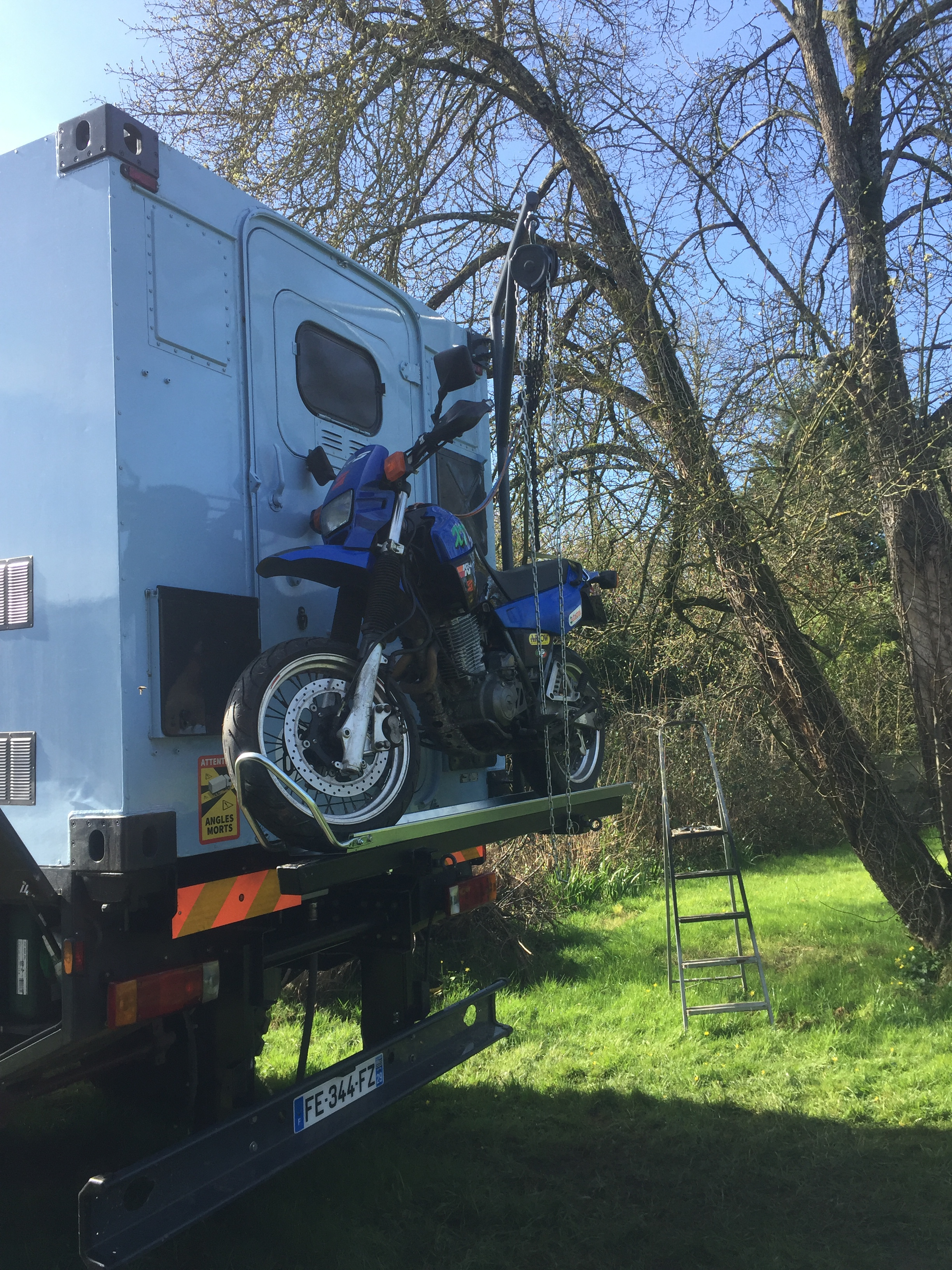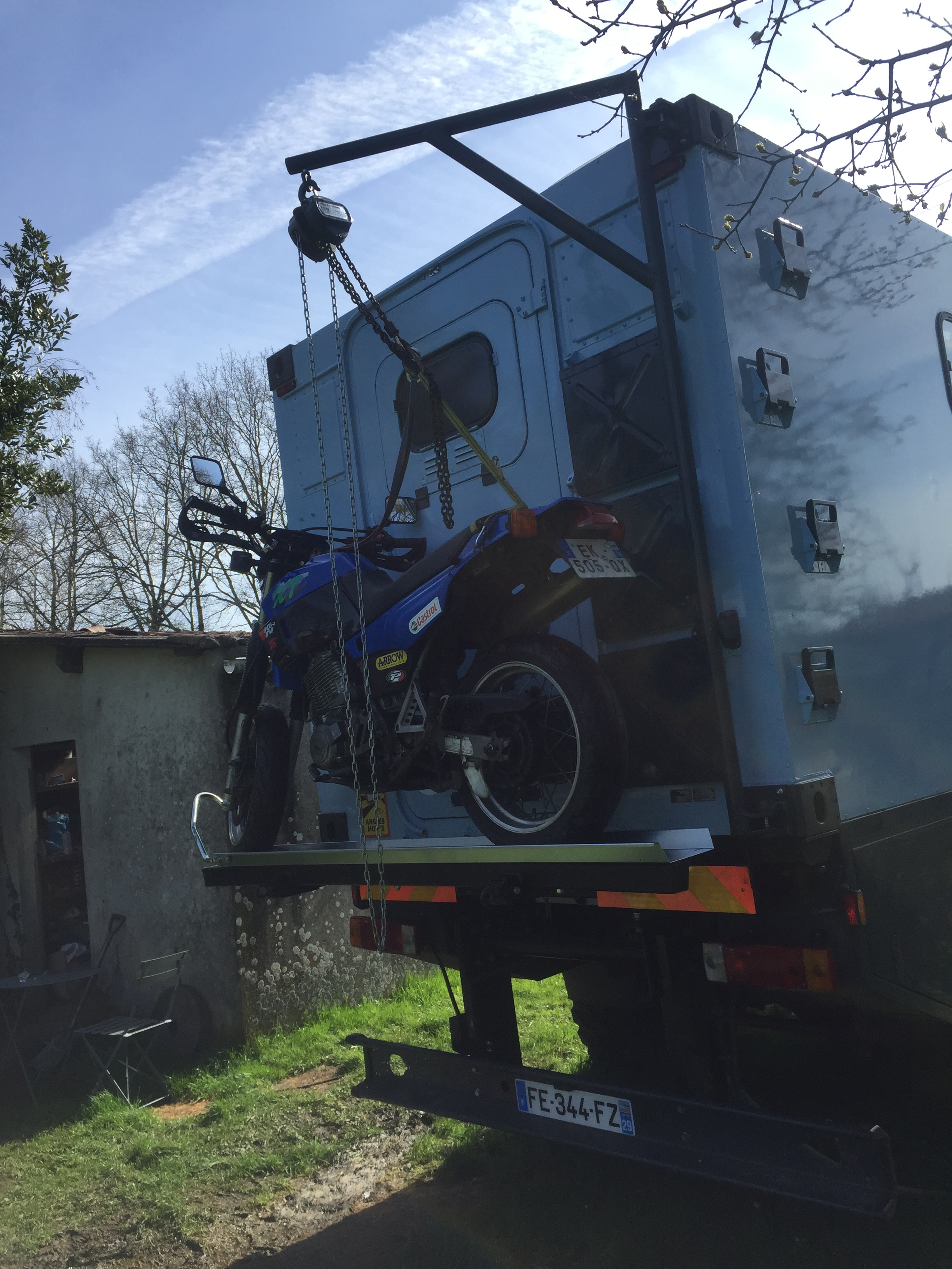 Ayant une porte d’accès à l’arrière un porte moto en dur était dur à mettre en place donc voici ce que j’ai fait