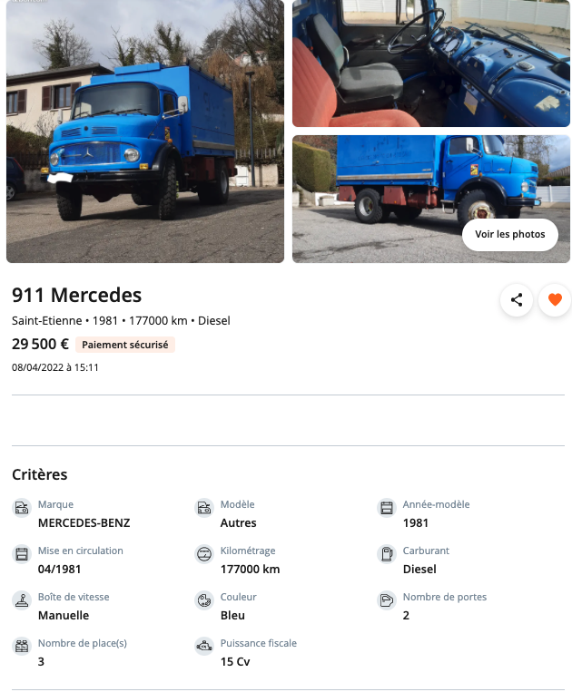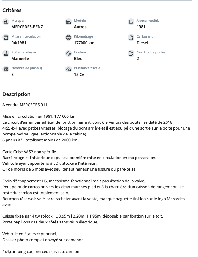 - ↳ Petites Annonces Mercedes 911 - 1113 - 1413