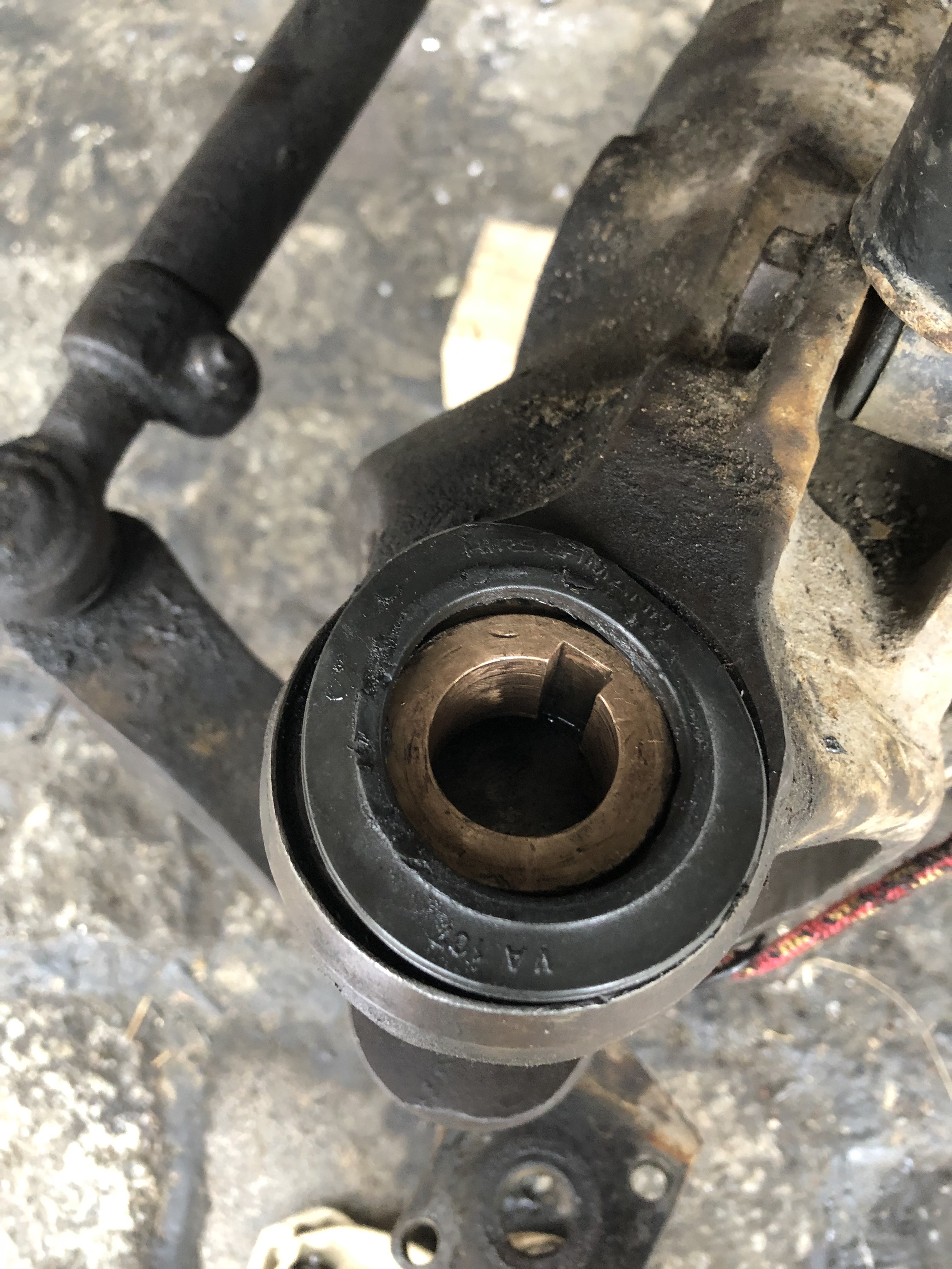 Je viens de réviser les joints et j'ai remarqué en les remontant que l'arbre n'était pas centré dans le guide. L'arbre est un peu poussé vers le haut. Malheureusement, c'est difficile à voir. Quelle peut en être la cause ?