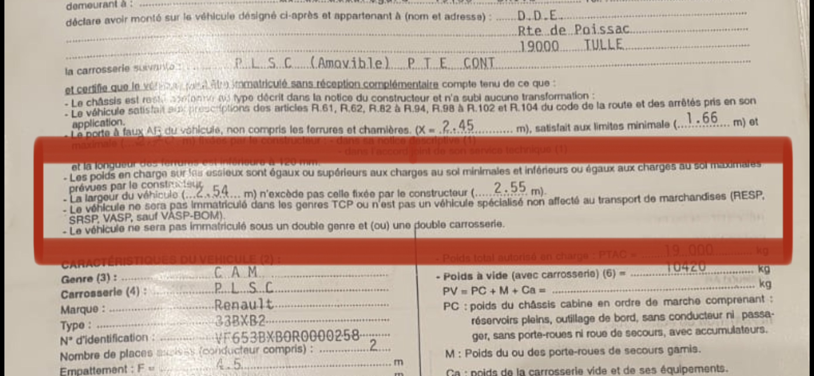 Sur le futur certificat de carrossage du camion que je souhaite transformer, je ne comprends pas à quoi cela correspond,