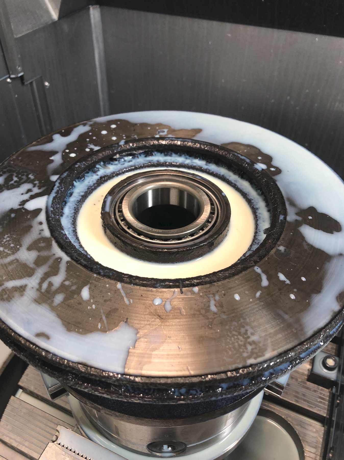 Merci pour vos suggestions et vos idées. Aujourd'hui, j'ai fraisé la douille un peu plus grande et j'ai installé un roulement NTN JLM 104948/910.