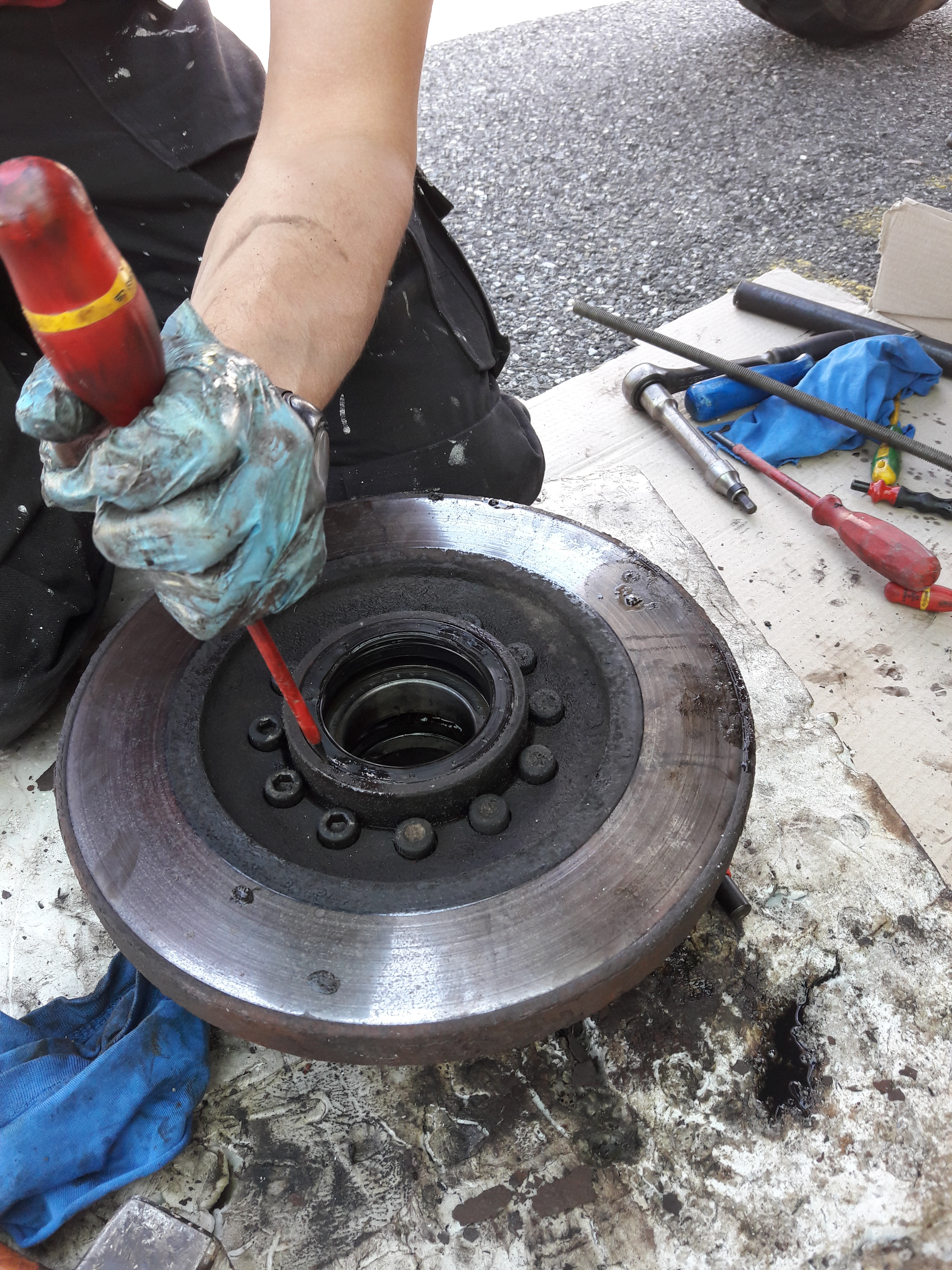 En changeant les manchons de l'essieu, j'ai vu que le coussinet du roulement de roue était desserré.