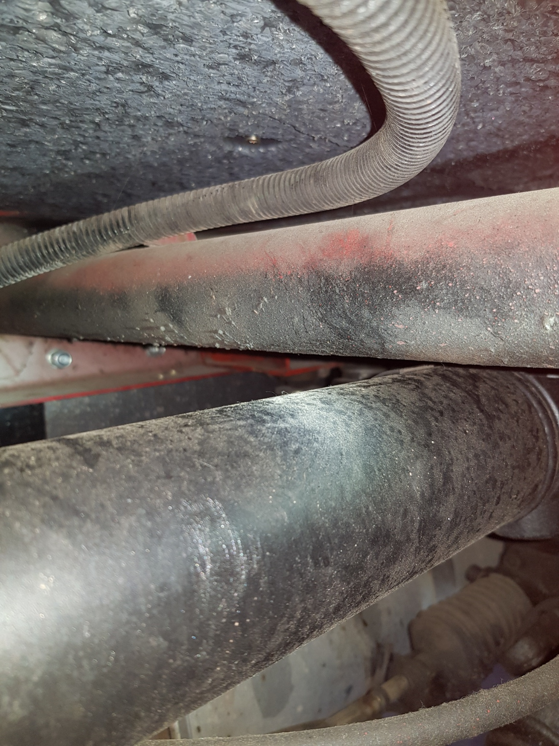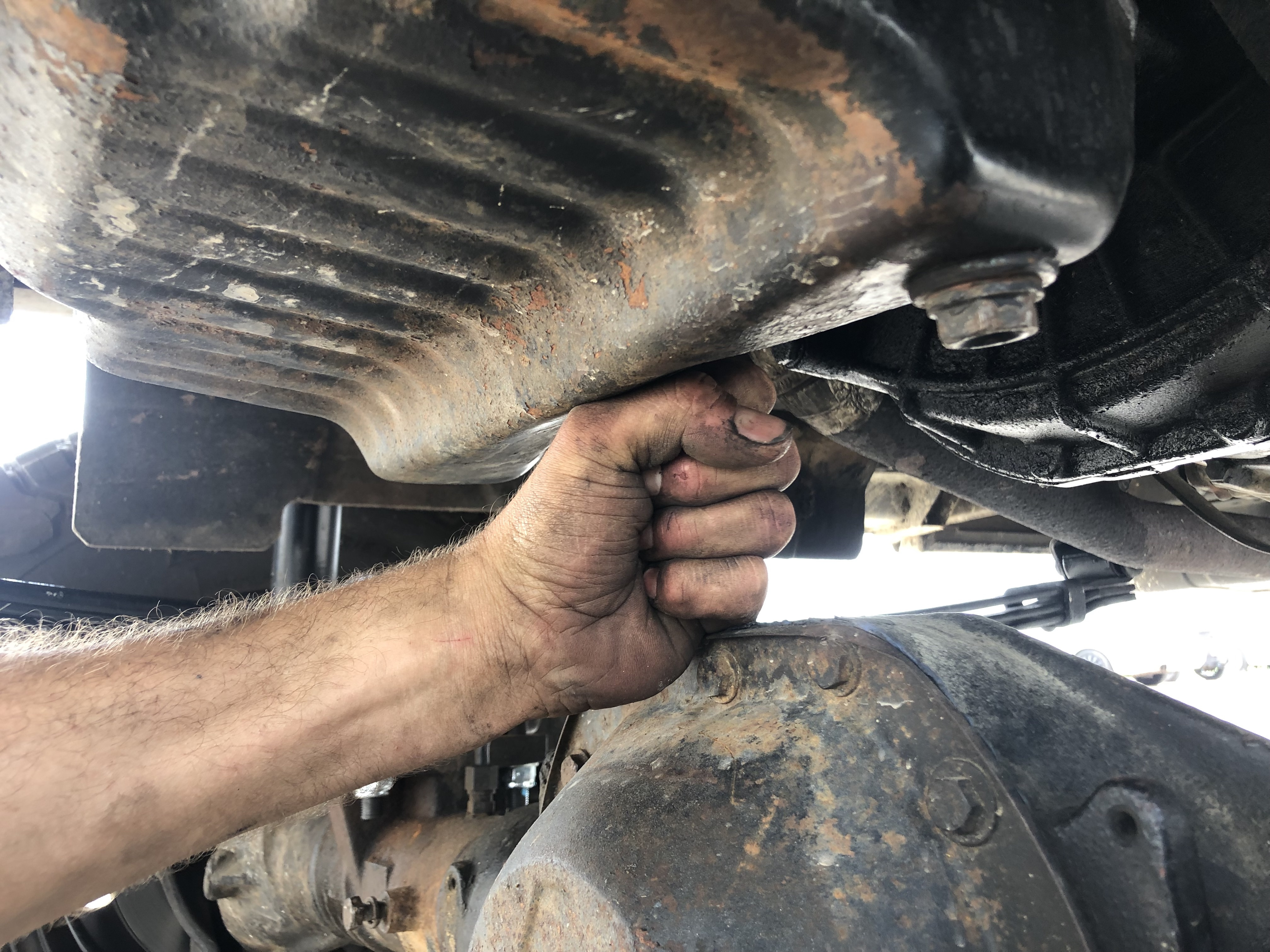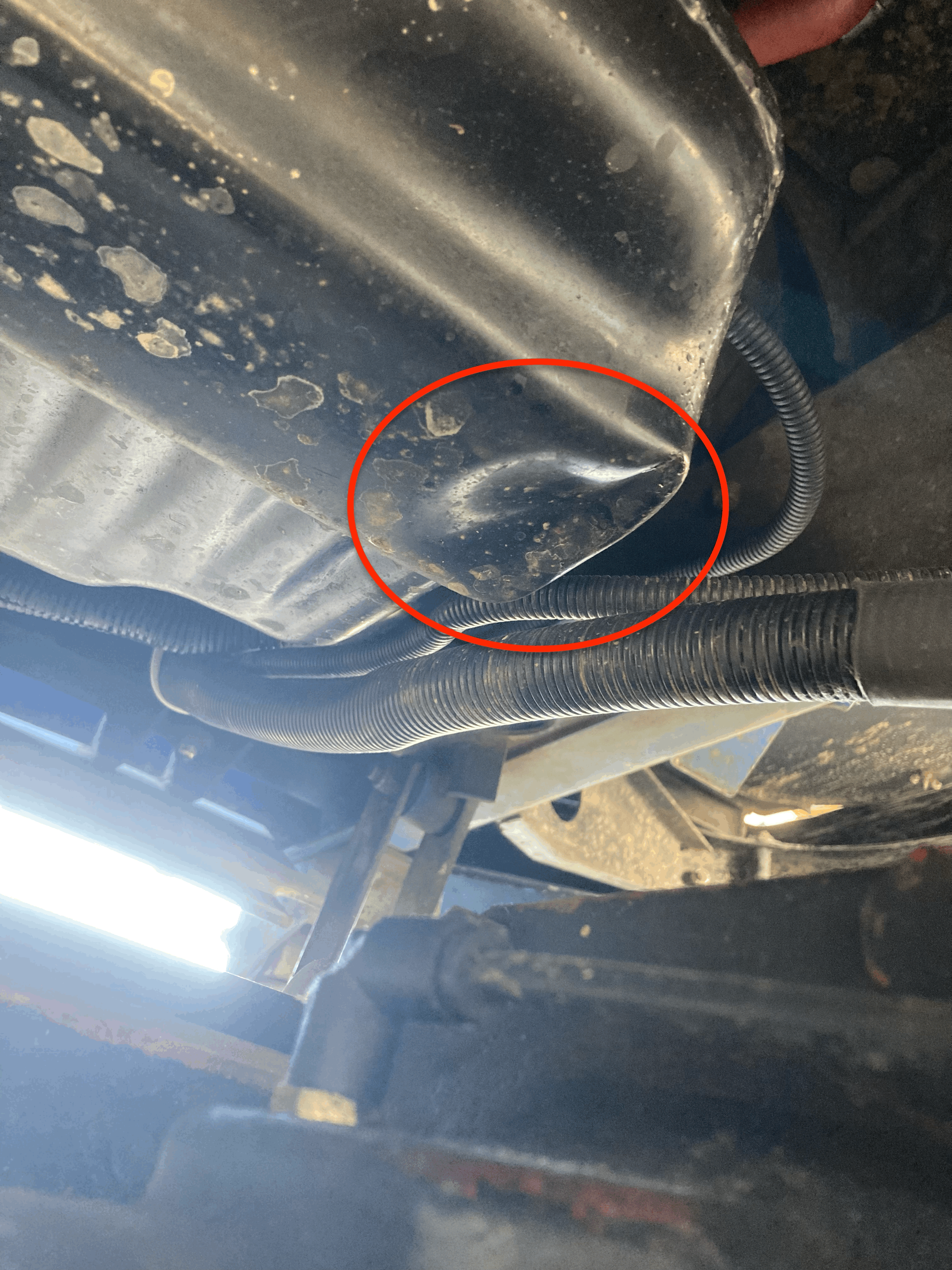 En me couchant sous le camion aujourd'hui voila la belle surprise que j'ai découvert: une belle bosse dans mon carter d'huile.