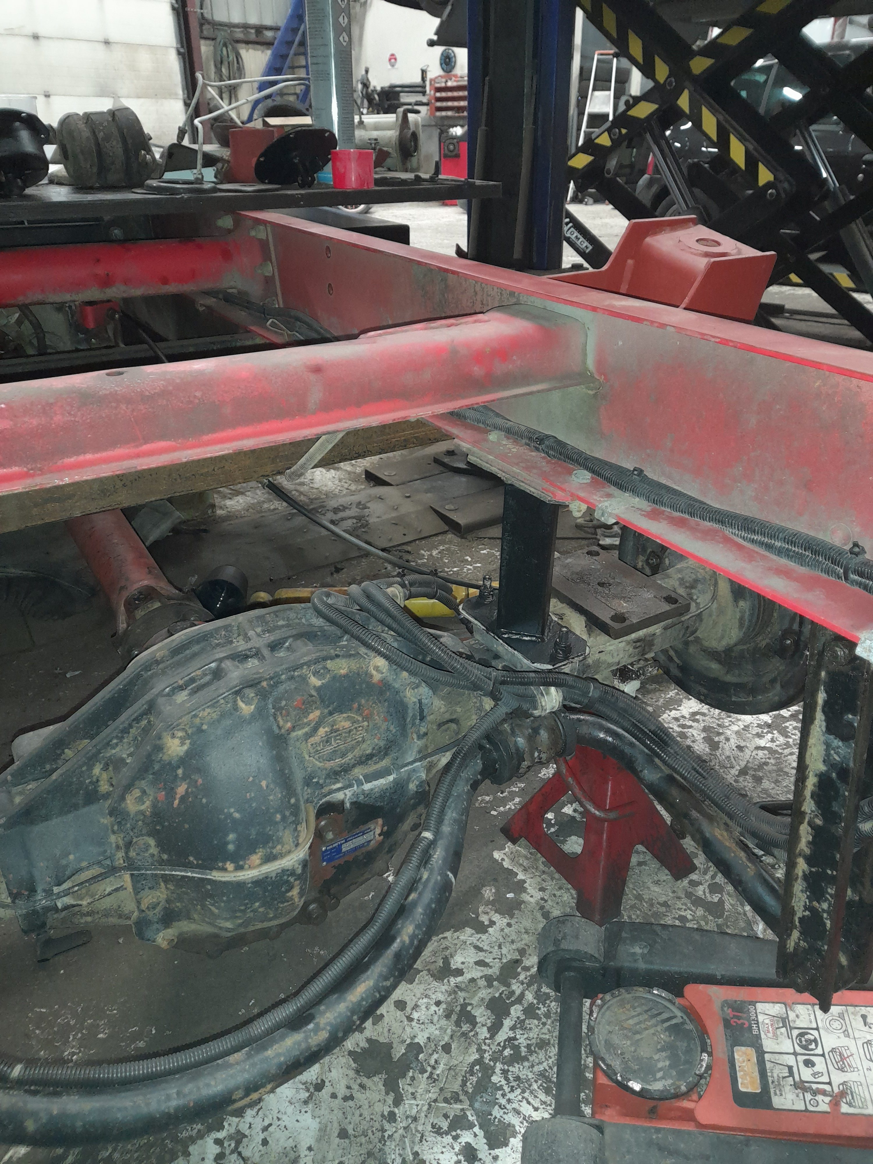Les lames sont démontées sur les photos, le pont arrière posé sur les butées.
