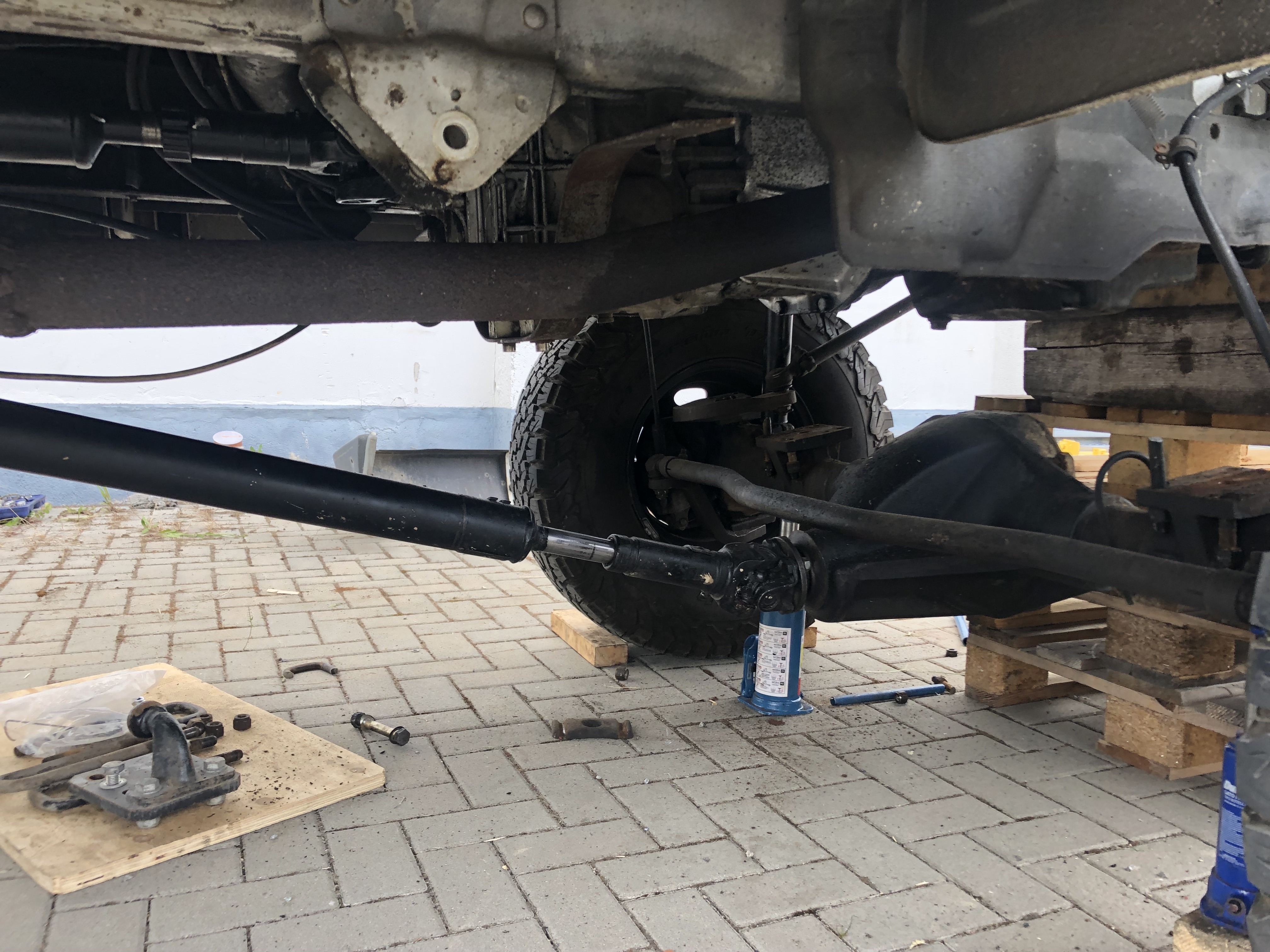 Du coup, tu vas avoir le cardant avant (Boite de transfert --> Pont Avant) à revoir aussi car déjà d'origine l'angle est trop important...