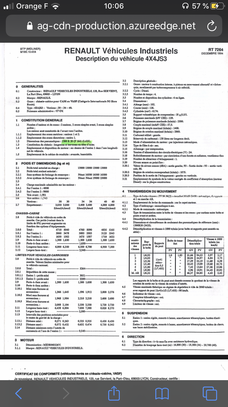 Tu peut aussi travailler avec la DREAL pour concerver les mesures de PAF arrière qu'il ont utilisés, tu dois sûrement avoir une attestation RVI (RENAULT TRUCK) dans ce sens dans les documents.