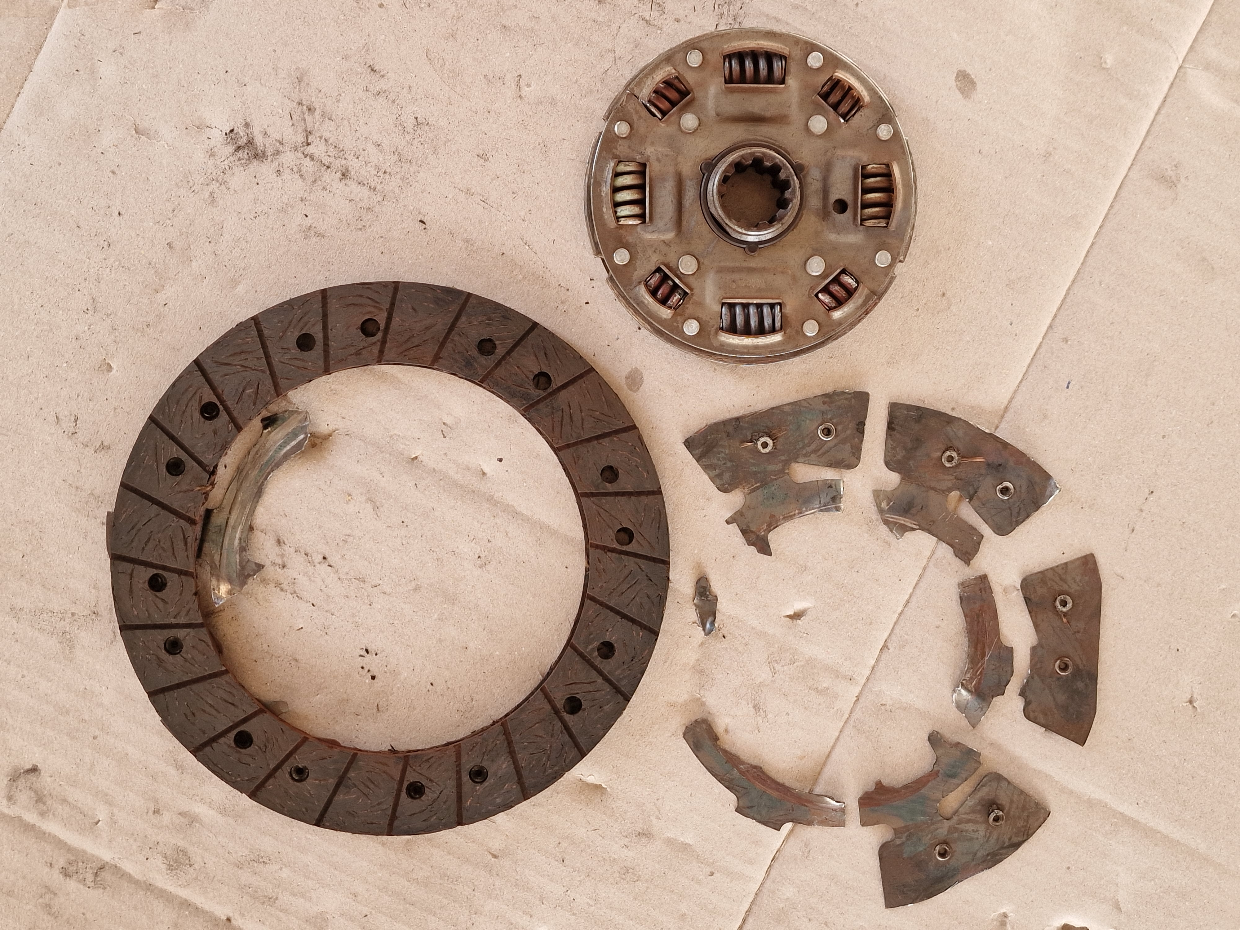 Impressionnant l'état de l'embrayage ! Même si le matos est un peu faible , cela n'explique pas la suite des pannes et l'état du disque .