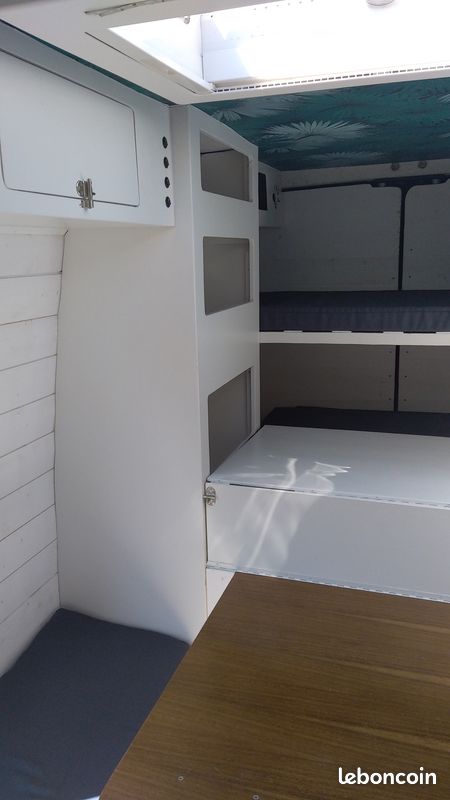 Aménagement et couchage pour 2 adultes et 1 enfant.