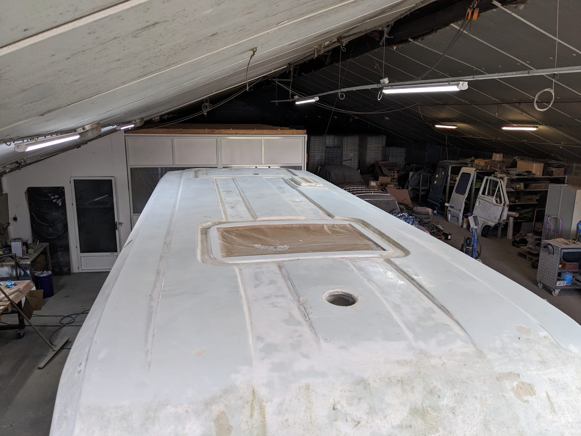 Aujourd'hui, c'étais la mise en apprêt + gel coat sur le toit :