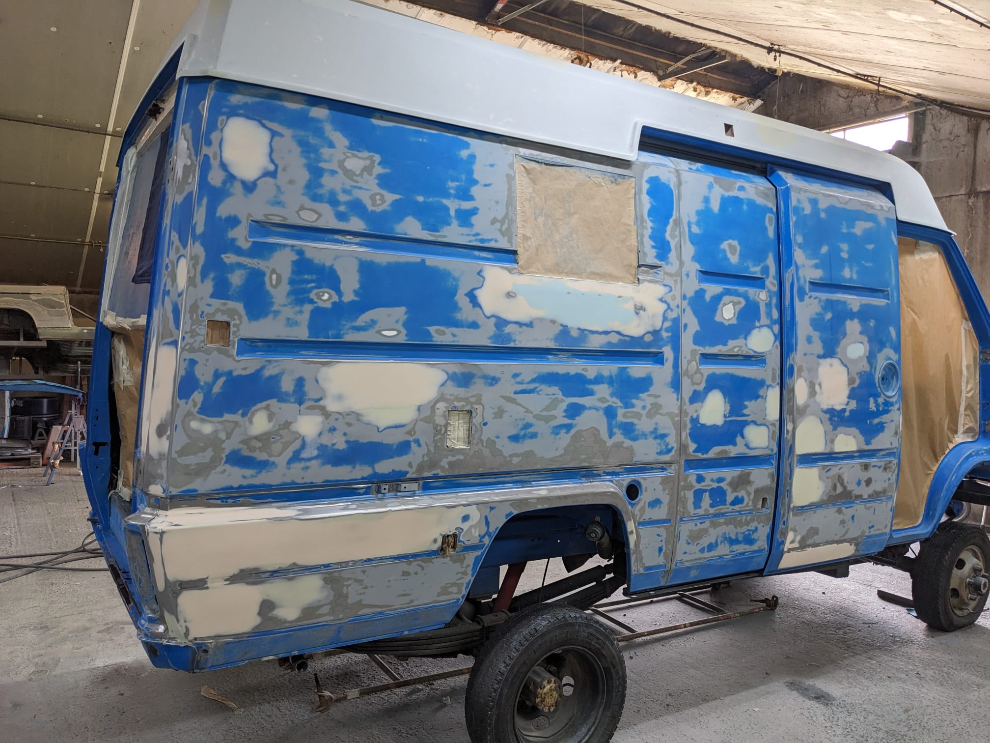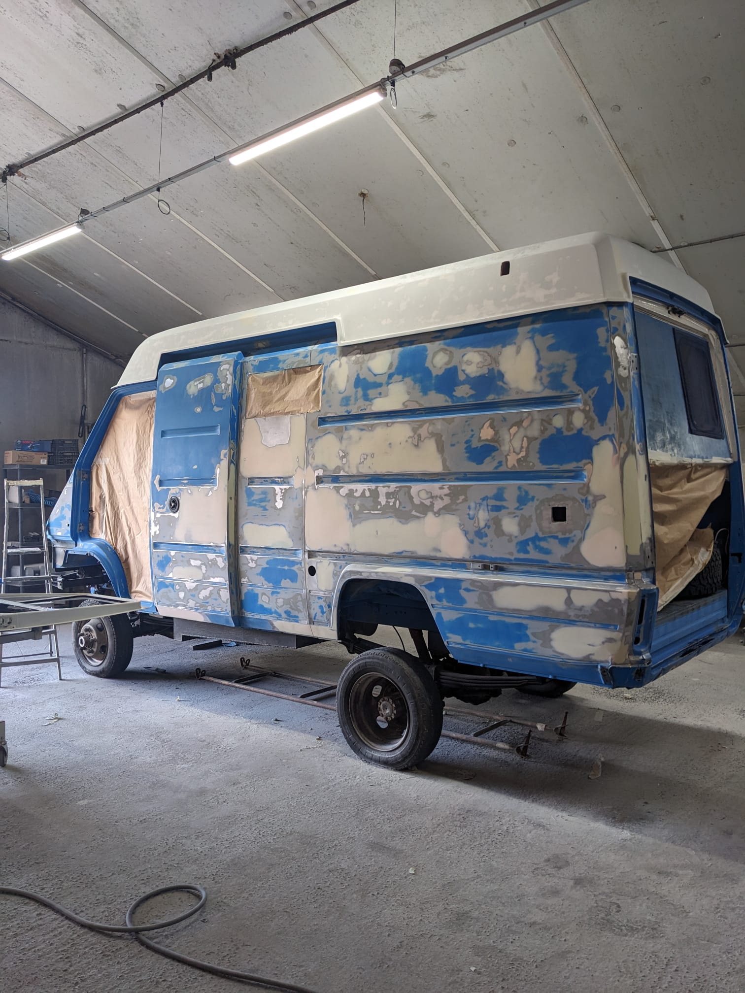 Les mastiques qui avais servie à camoufler les enfoncements se fissurais, le contour des baies avais de la rouille, le toit n’étais plus parfaitement étanche au niveau du lanterneau. Certaines amorces de rouille sur la carrosserie et les joints de liaisons des panneaux de taule craquelé me chagrinais quand même beaucoup les jours de pluies.. :?