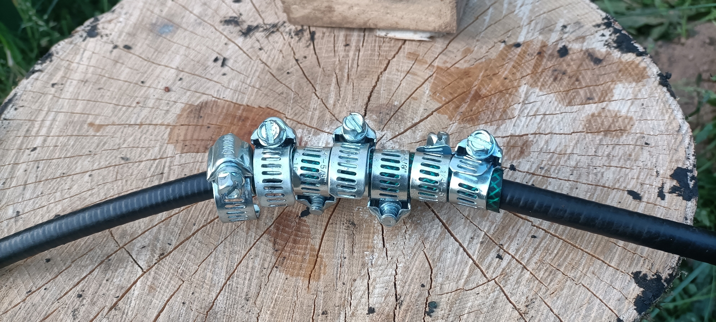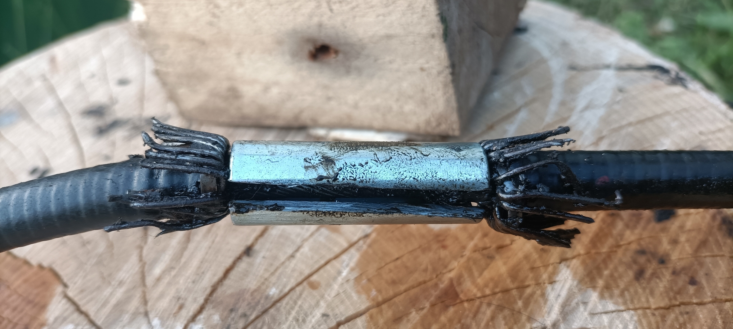 Un petit tube scié sur la longueur afin de pouvoir placer et combler le bout de gaine manquant. :