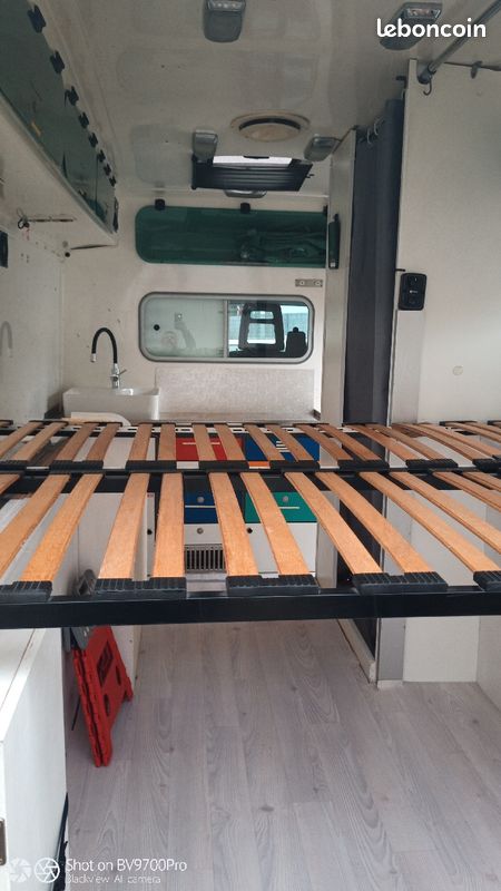 Chauffe eau 12v et 220v, panneau solaire,,WC,douche,grand lit sur soute, banquette avec frigo 12v et 220v , évier, réservoir eau propre 90l ...eau usée 2x40l... antenne TV , ... prise USB..etc