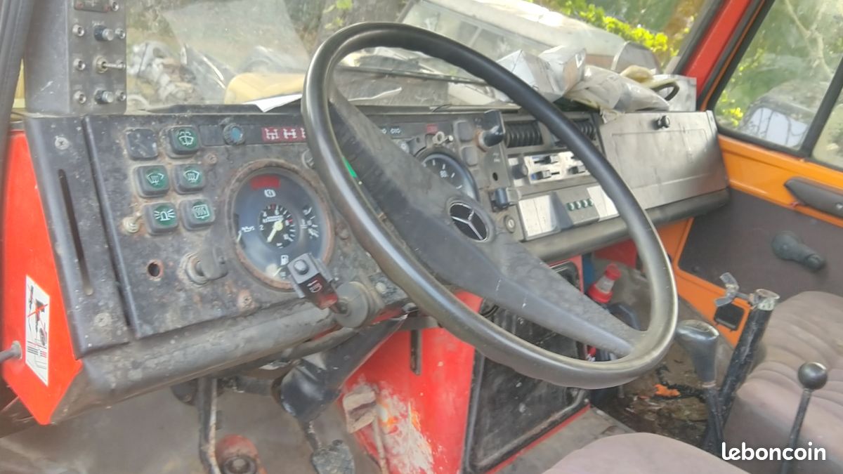 "Vends Mercedes-Benz unimog 424 421, tri-benne, 4×4, hydraulique avant et arrière, véhicule très bon état, pas de corrosion, CT ok vient de passer, plaque setra + étrave papillon Bialer. 4 chaînes à neige. Réhaussres de benne grillagées. Premier contact par mail de préférence."