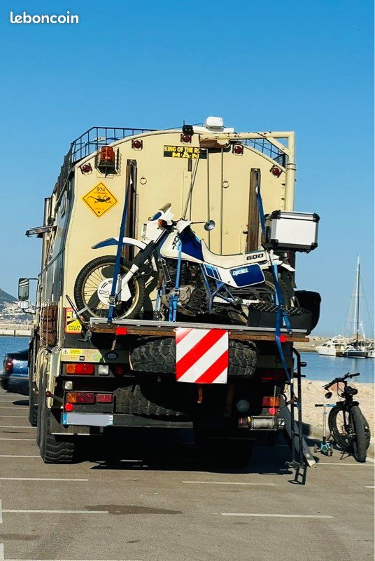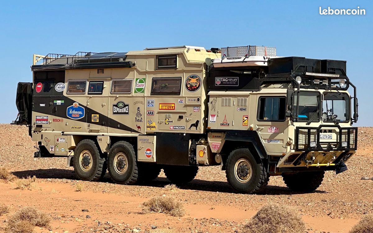 Le camion a été rénové et optimisé par nos soins et la majorité des éléments sont neufs (parquet, table, plan de travail, lave-vaisselle, évier, robinetterie climatisation, tente de toit, store banne, treuils, coffre de toit, porte moto..).