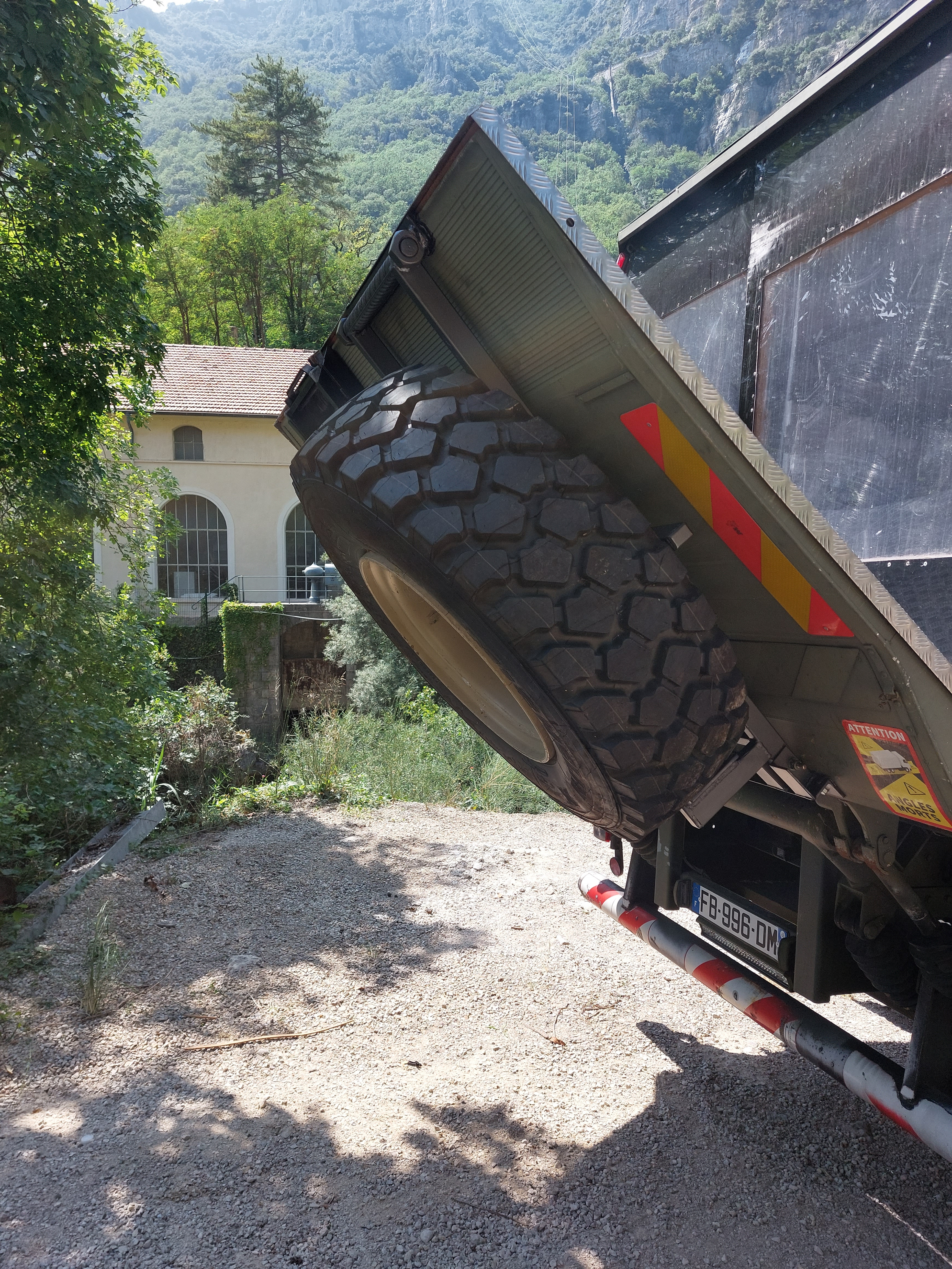 je continue à faire évoluer mon camion , pose d un siège pneumatiques en lieu et place de la banquette passager , fixation d une roue de secours et d un escalier sous le hayon..