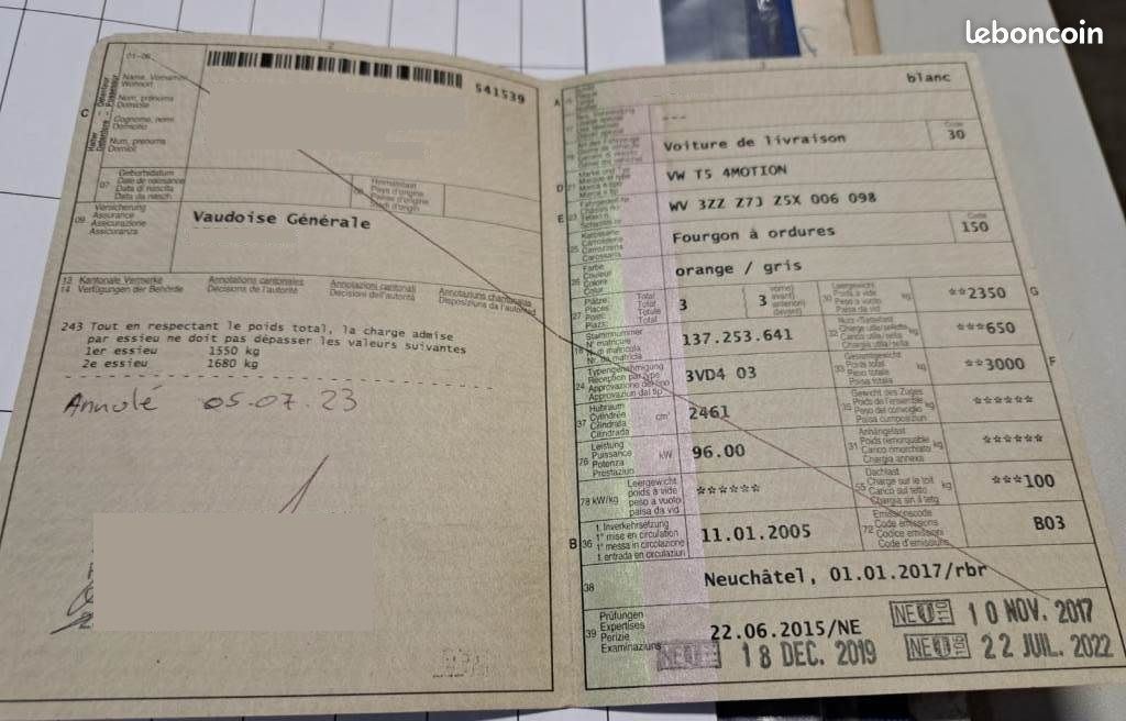 Re: 2 t5 4motion conduite a droite papiers suisses 12.500e