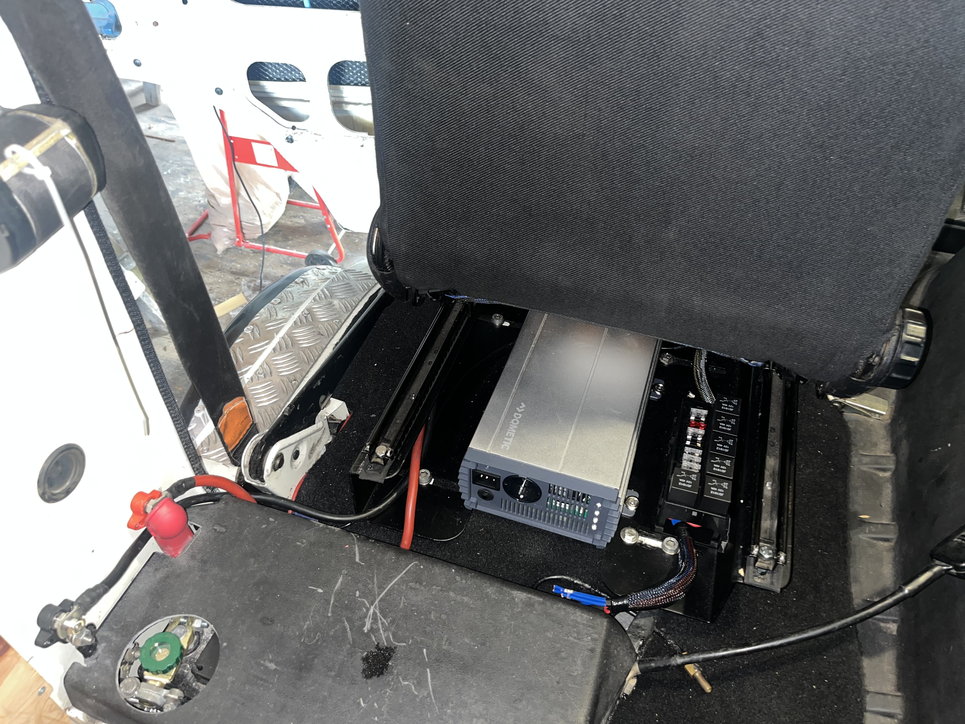 Par contre j ai pu intégrer sous siège le système électrique pour les accessoires .
