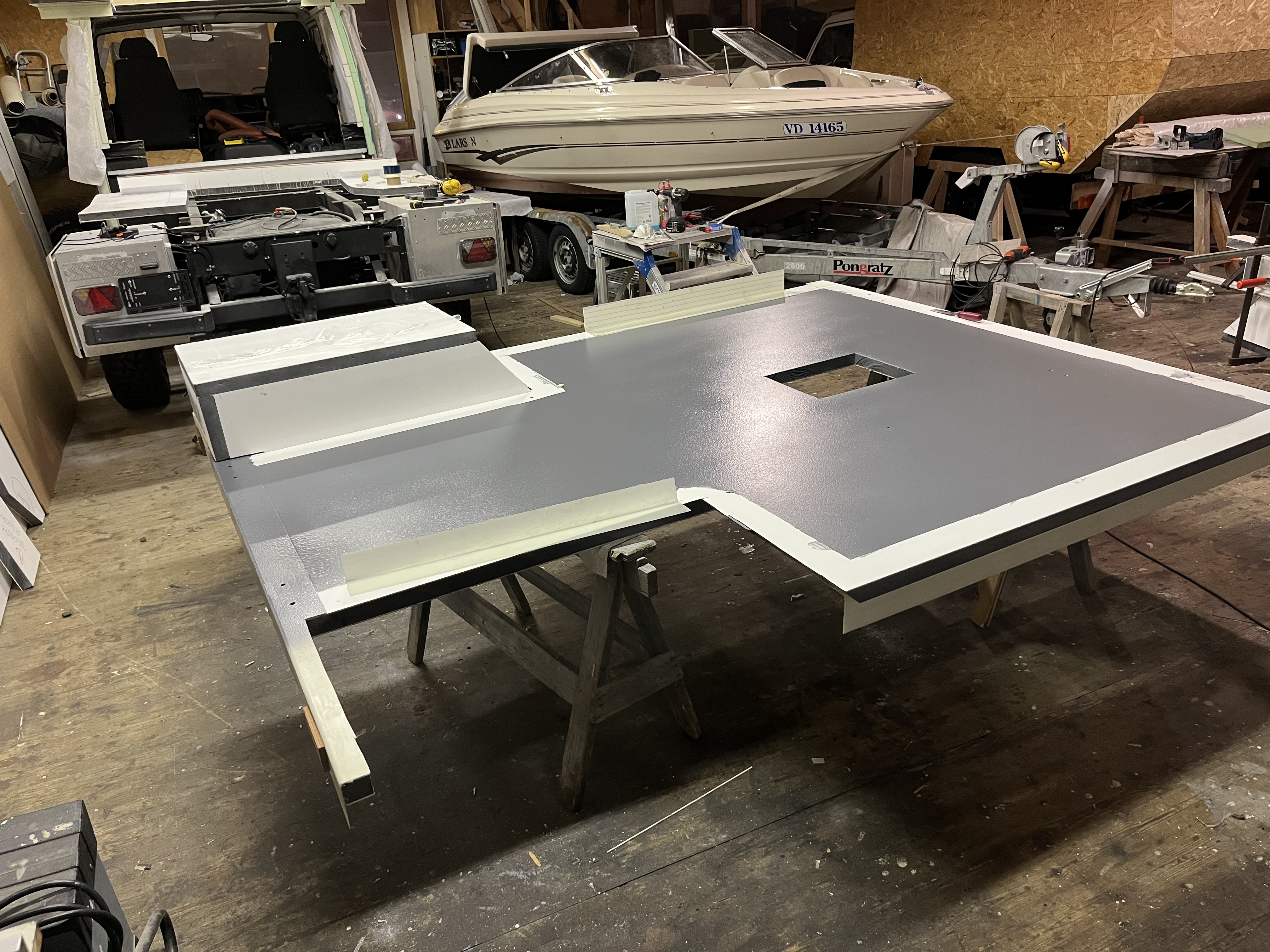 Dernier préparatifs et finitions avant la pose définitive de la plateforme du fond une fois en place sans mettre de cros moyen en œuvre la cellule ne sera plus demontable.