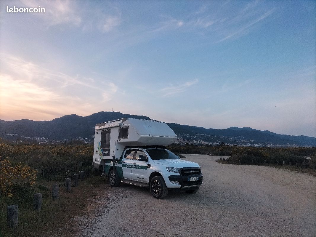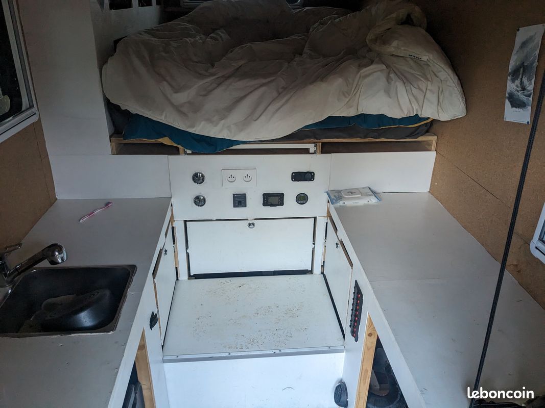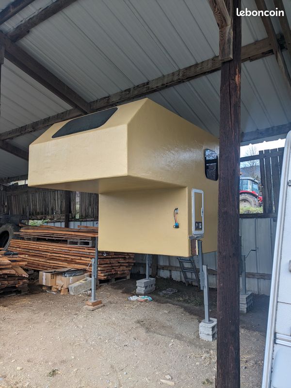 Je vends ma cellule pour pick up fond plat très bien équipée, construction panneau sandwich ( fibre de verre+isolant), très rigide, très léger, très bien isolé.
